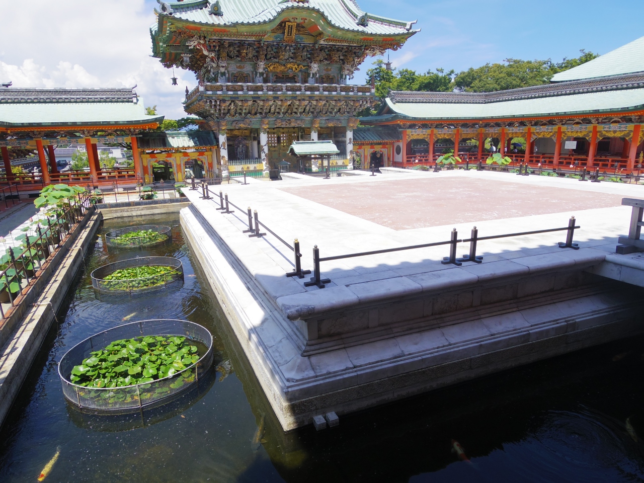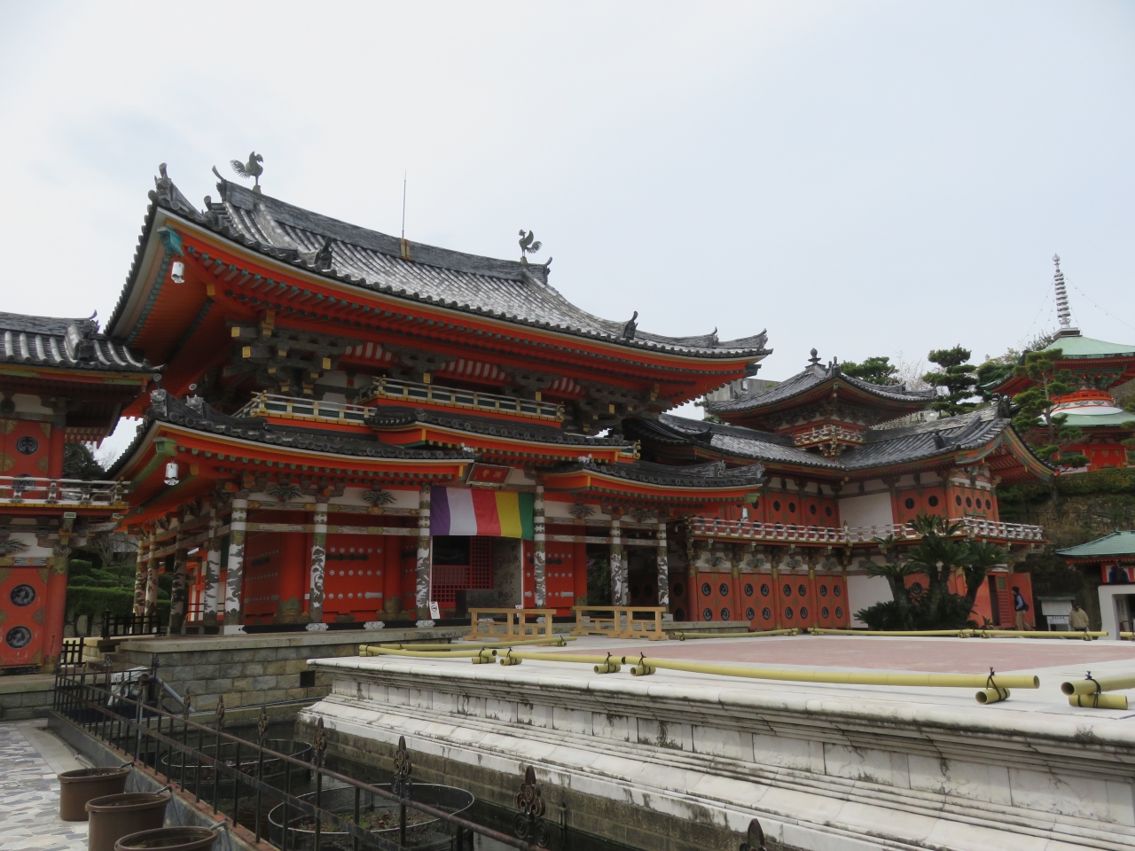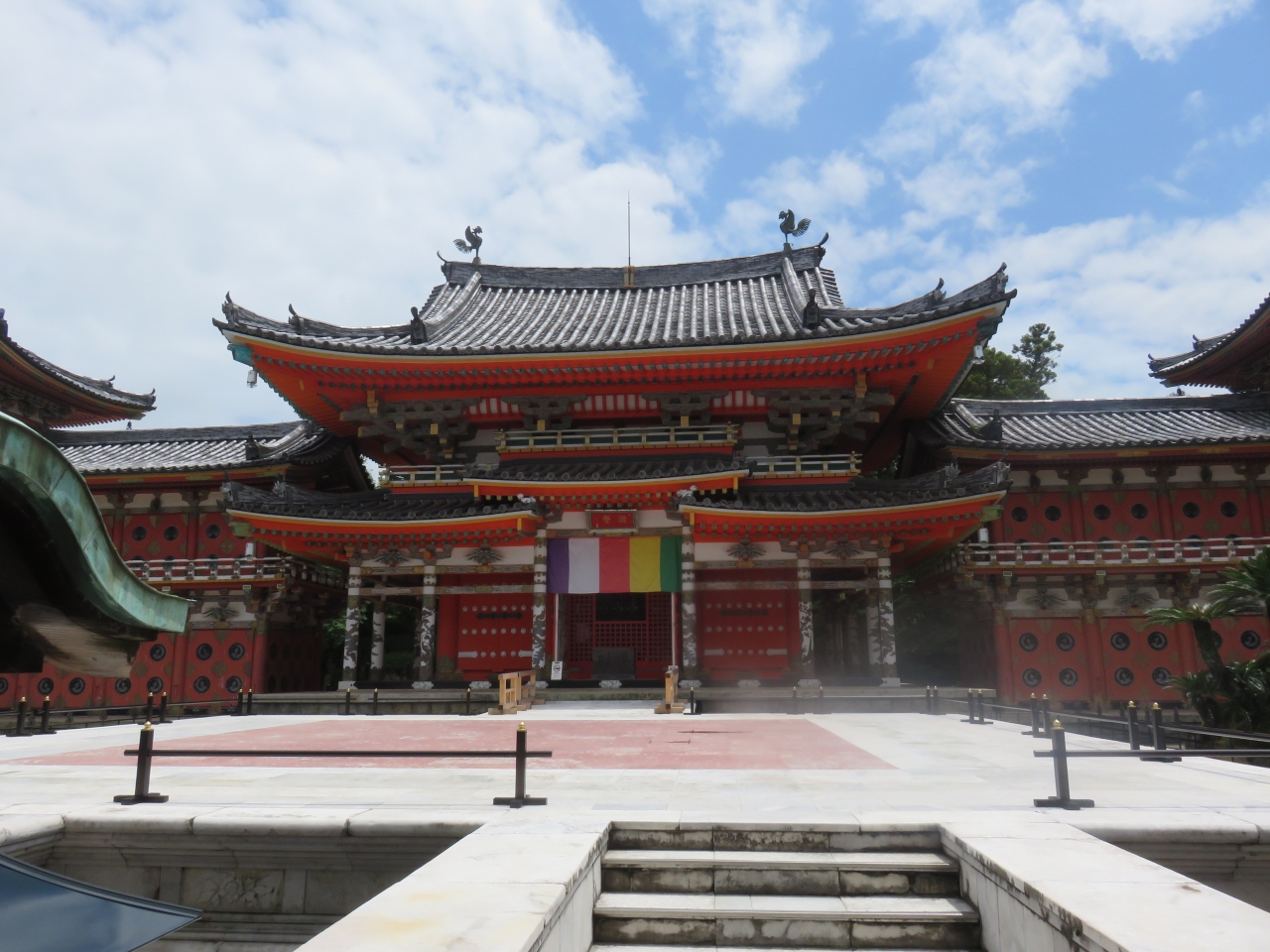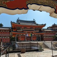京都宇治の平等院鳳凰堂をもとにした本堂や、それに向かい合う孝養門は日光東照宮の陽明門がもとになっています。
