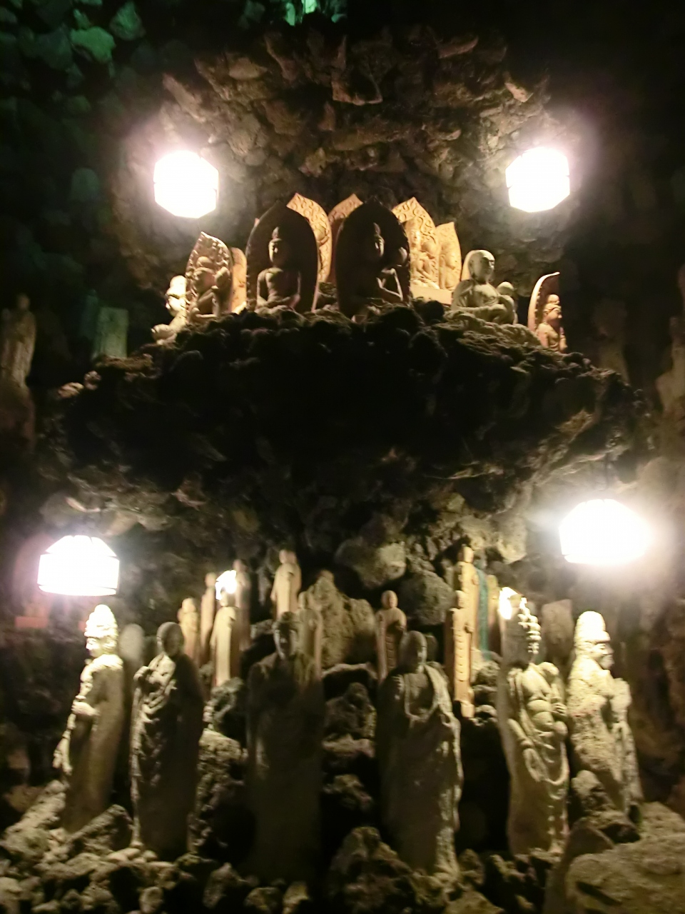 伽藍のほかにも見どころがたくさん。千仏洞地獄峡は、地下15メートル、長さ350メートルに渡って地獄と極楽を再現した洞窟です。テーマパークの洞窟を探検するかのような気分が味わえるので、必見です。