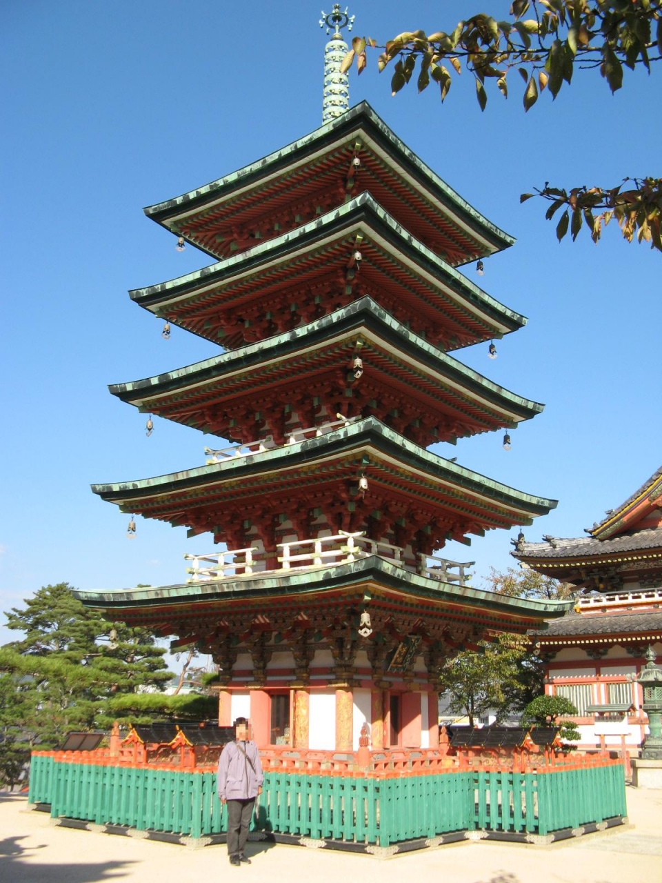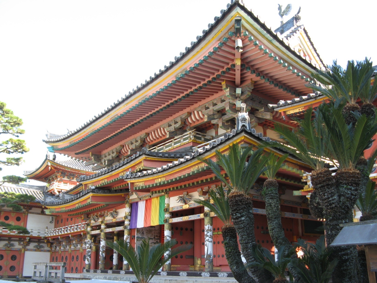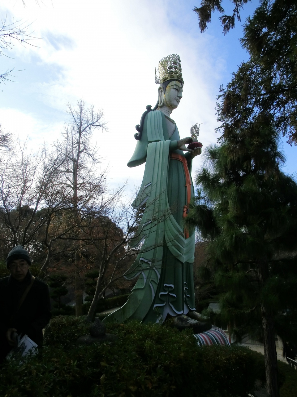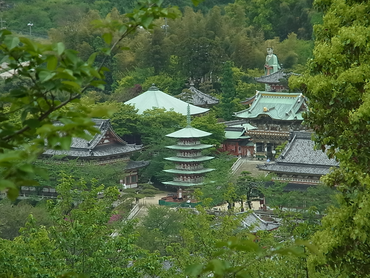 このお寺の特徴は、建物が全国の国宝建築を模して建てられていることです。個人が建てた伝統建築と言うと、よく自宅に趣味で天守を建ててしまった例などが思い浮かびますが、ここの規模はそんなちゃちなものではありません。日光東照宮の陽明門そっくりの孝養門、室尾寺の五重塔を模した塔、宇治の平等院鳳凰堂を思わせる本堂など、次々に現れるそっくり建物にびっくりします。模倣もここまでやるなら本物、称賛に値すると思いました。技術的にも貴重なはず。ここの建物は15棟が国登録有形文化財に指定されています。