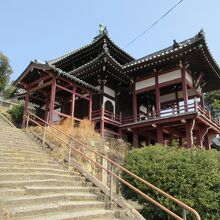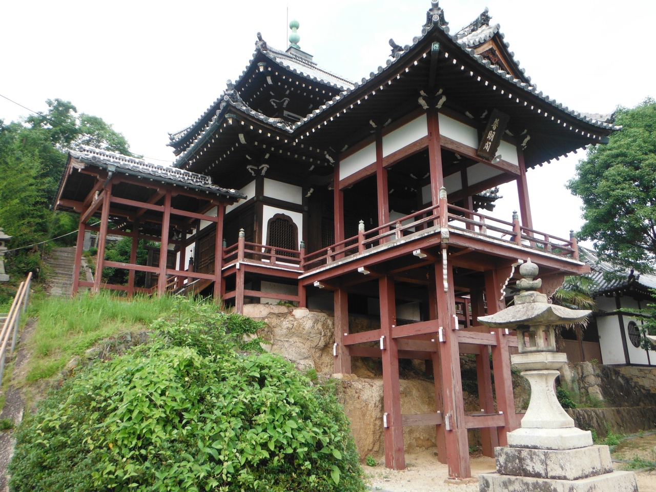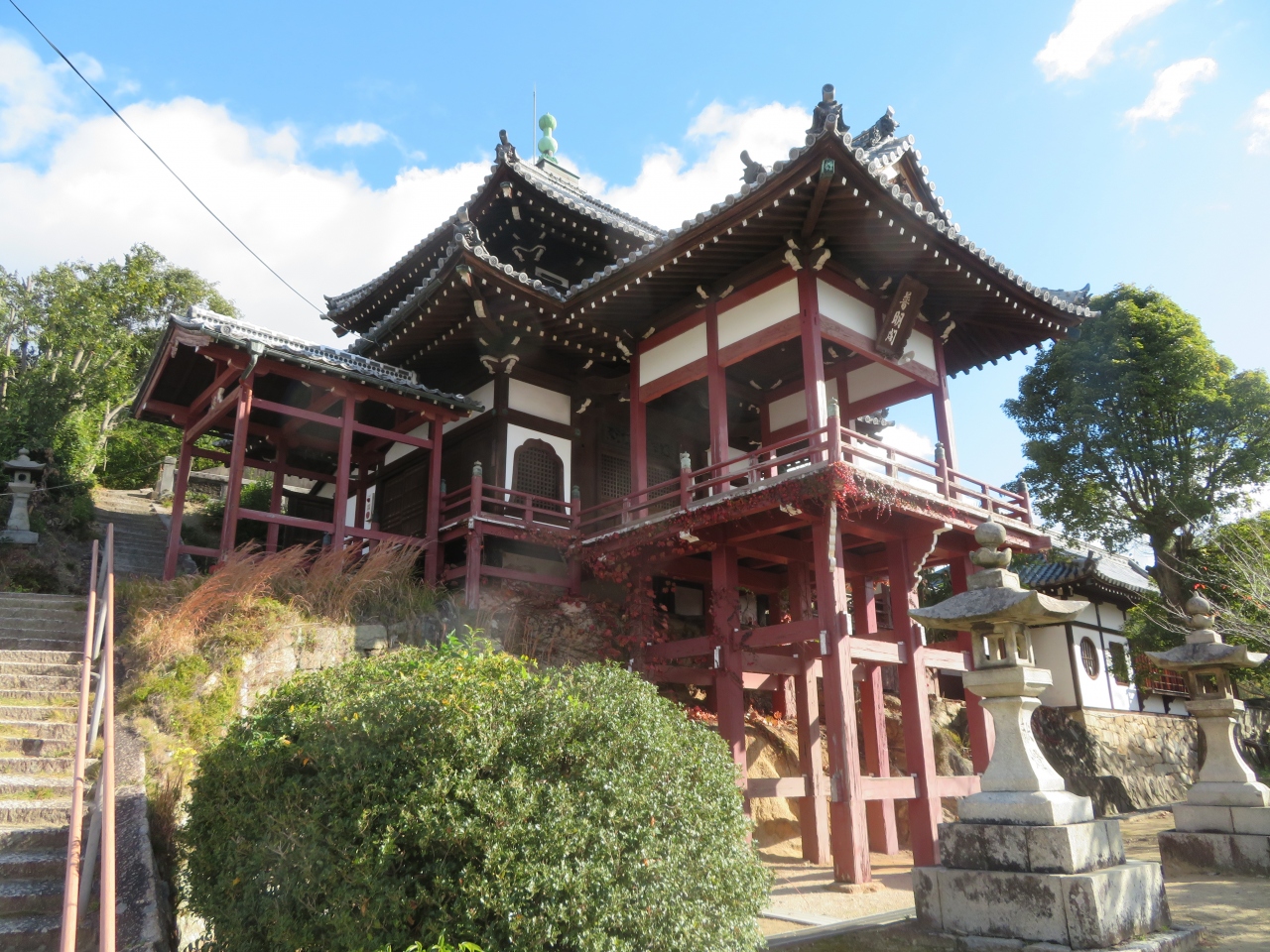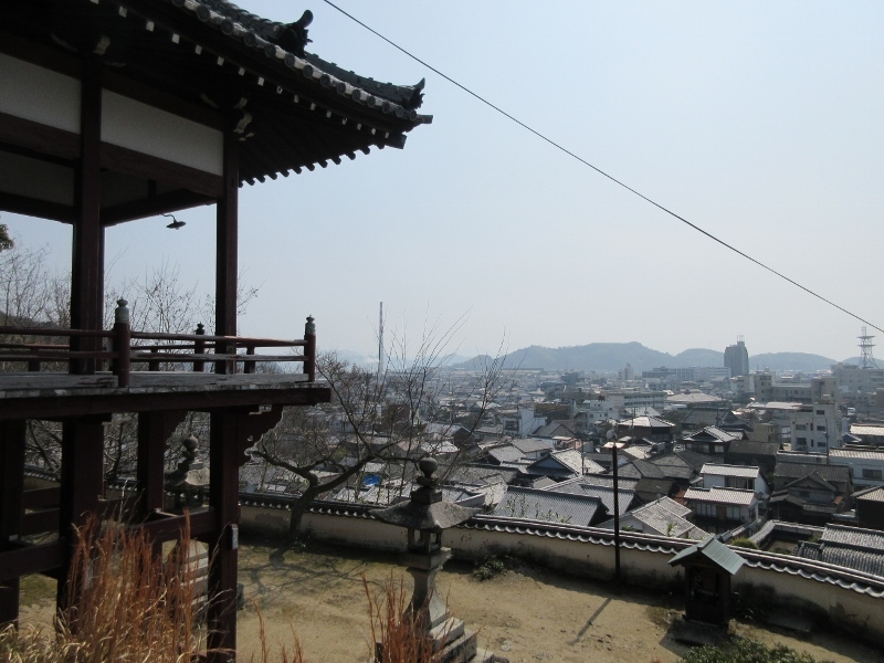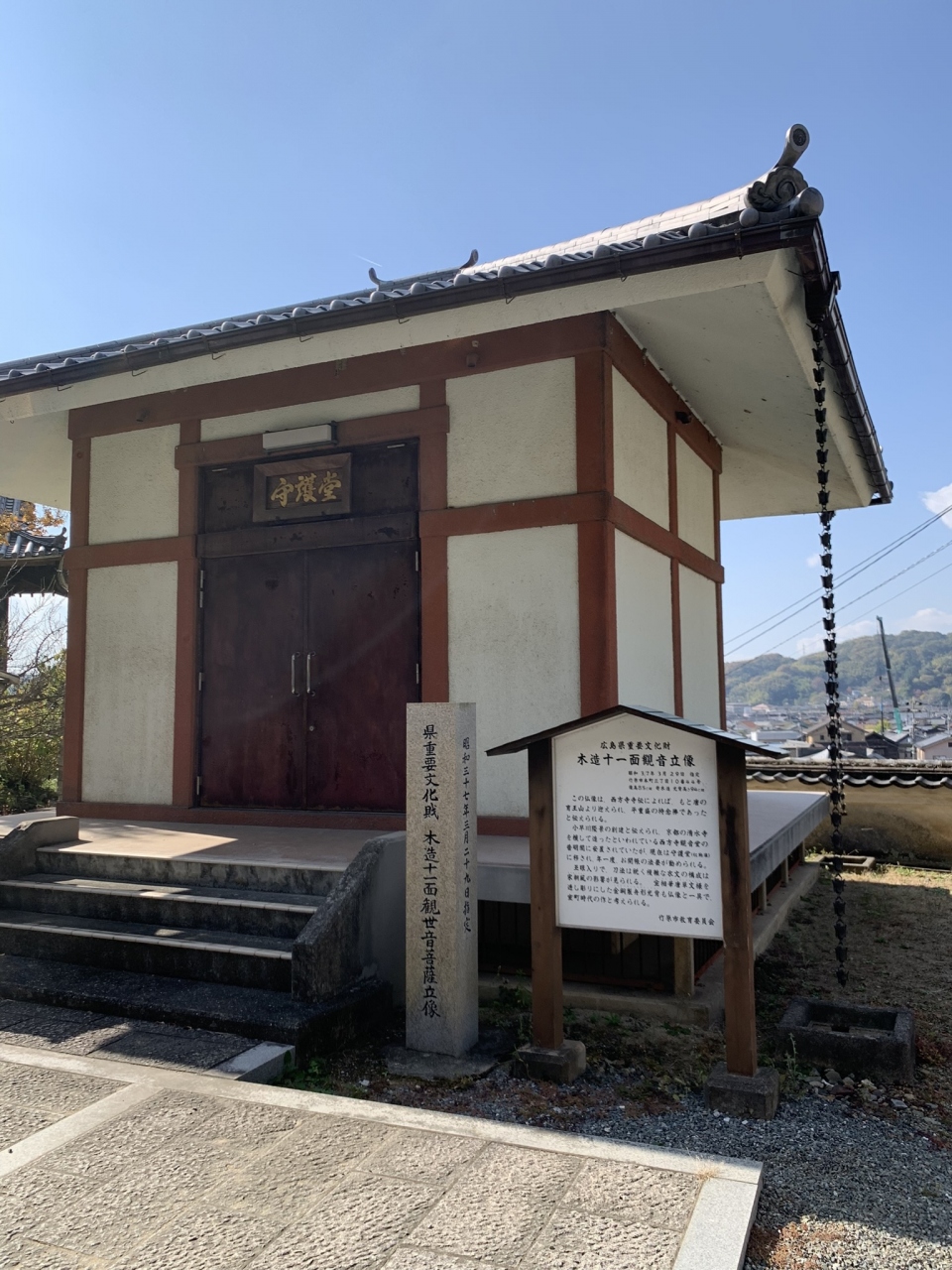 竹原町並み保存地区本町通りの中ほど、道を東側にそれると石段が見えて、そこを登ると浄土宗の西方寺がある。境内には本堂、鐘楼... 続きを読む、庫裡、法界地蔵堂、山門などが並んでいる。本堂南側の高台に西方寺の観音堂の普明閣がある。1758年に京都の清水寺の舞台を模して建築したという。勿論かなりの縮小版である。ここには、木造十一面観音立像(県重要文化財)が祀られている。普明閣の前からは竹原の町が一望できる。 閉じる