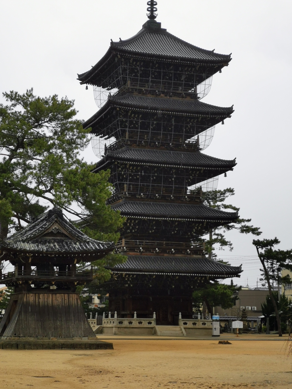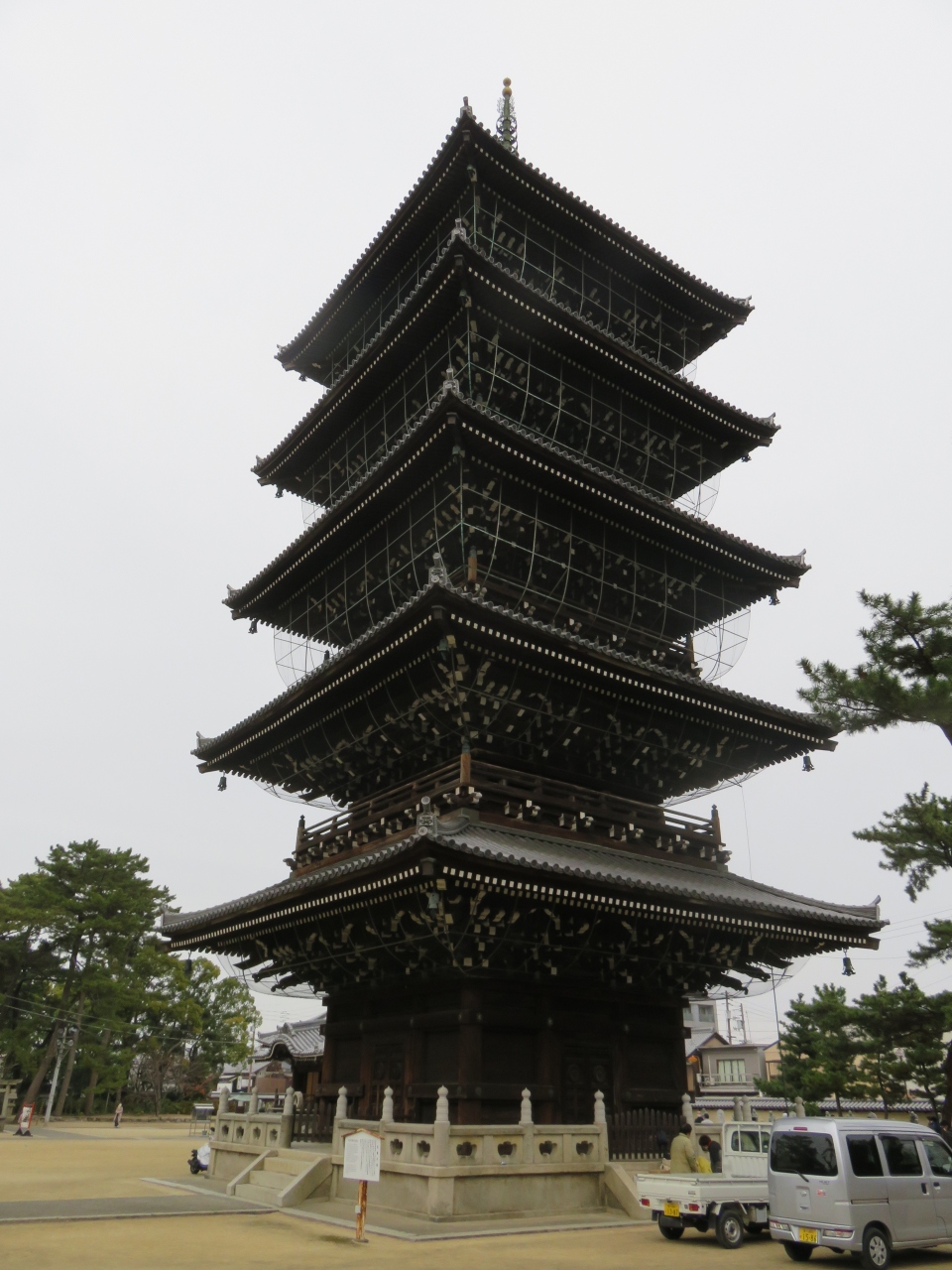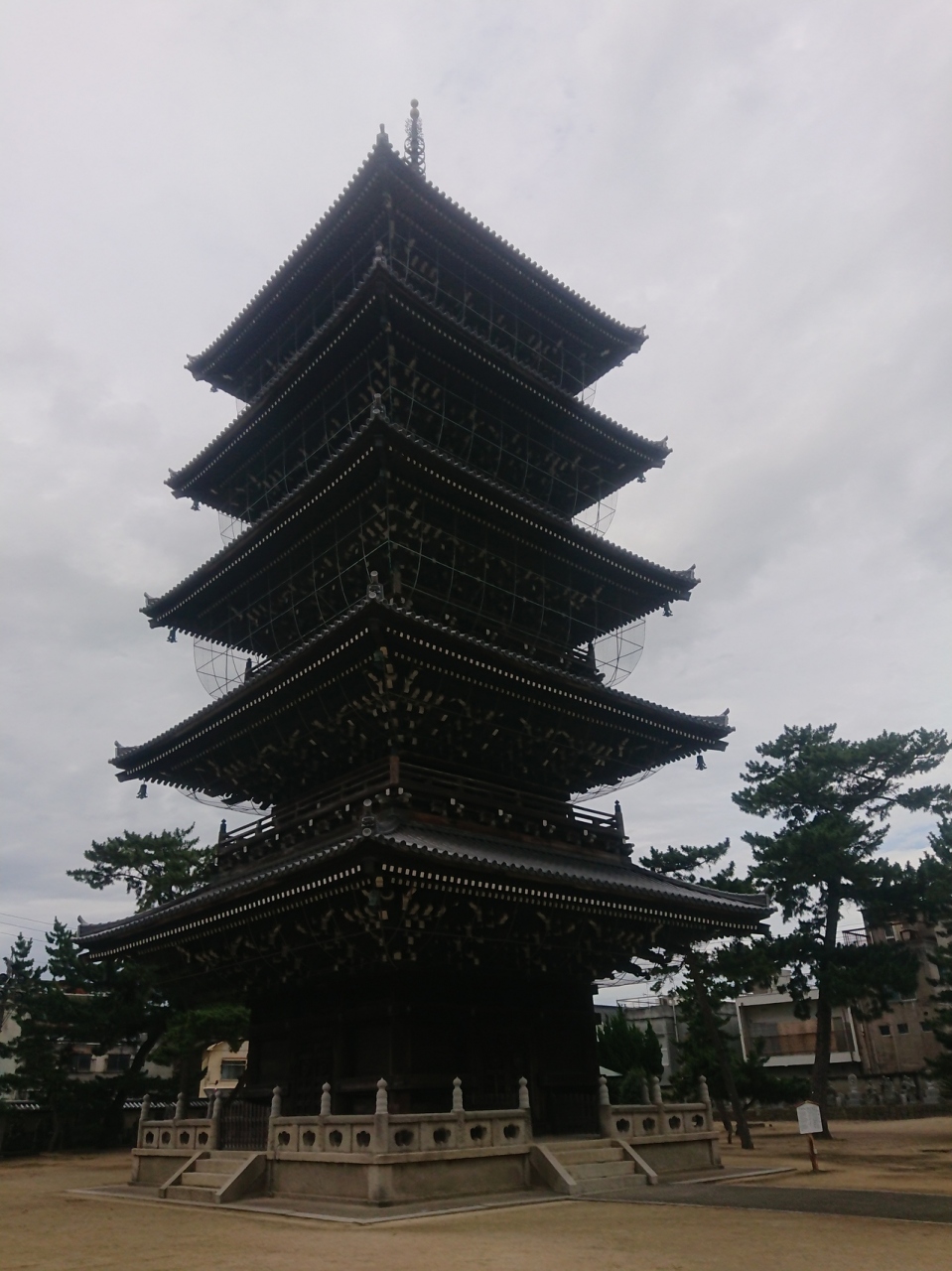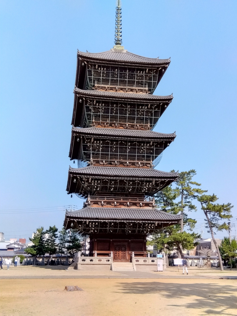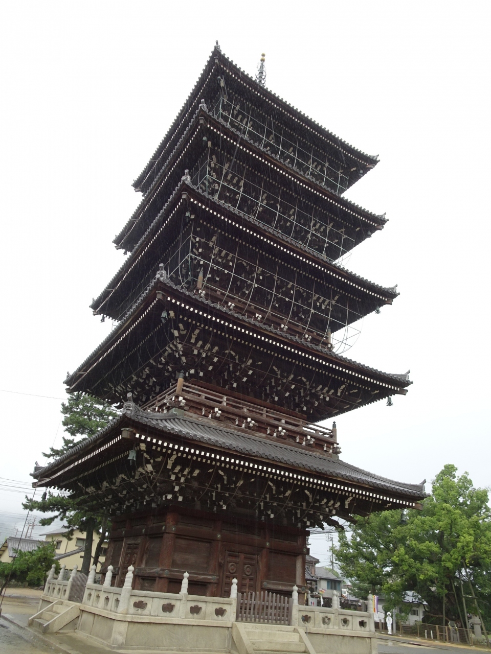 国内の木造塔として3番目の高さですが、創建後に何度か建替えられていて、今の五重塔は明治35年に再建された四代目。