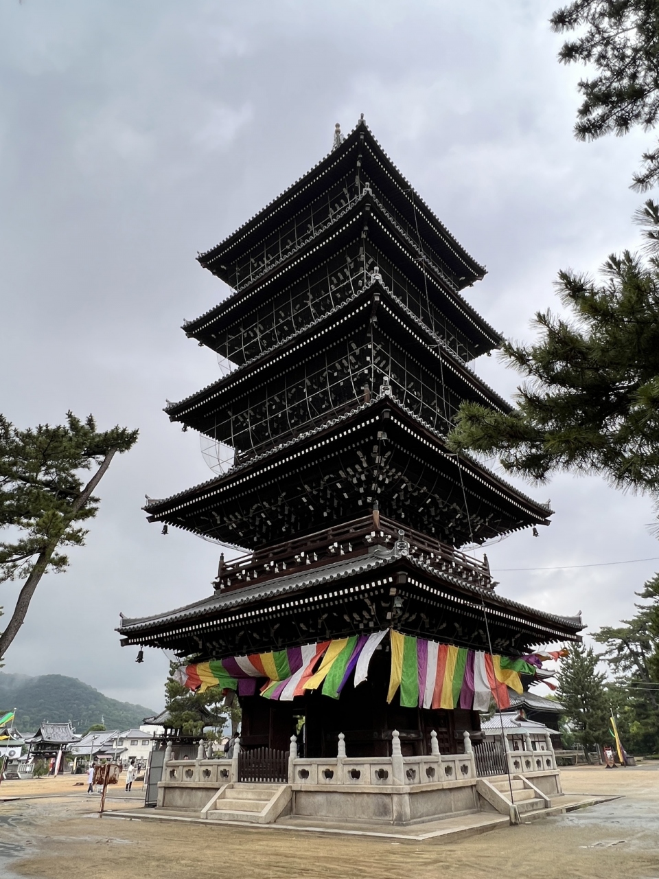 弘法大師生誕の地として知られる善通寺ですが、敷地がとても広く、とても立派な五重塔に驚きました。日本では3番目の高さのこの五... 続きを読む重塔には、一般的な木造多層塔とは異なるふたつの特徴があるそうです。ひとつは五層、すべての階の天井が高くつくられ、人が立って歩けるようになっている点、こうした構造はめずらしく、以前は5階まで上がって眺望を楽しめたそうです。 もうひとつの特徴は、塔の中心の心柱は塔全体を支える重要な部材のはずですが、善通寺の五重塔の心柱は、地面(基礎の礎石)から浮いているのだとか。心柱は5層目屋根裏で鎖を使って吊り下げられ、この心柱の構造上の役割は未だ解明されていないと。 毎年、ゴールデンウィークには1階と2階の内部が特別公開されているので、是非見たいとおもいました。 閉じる
