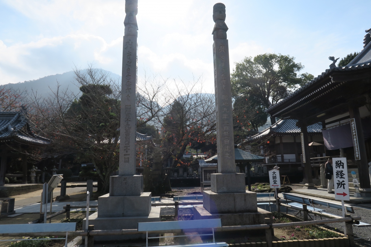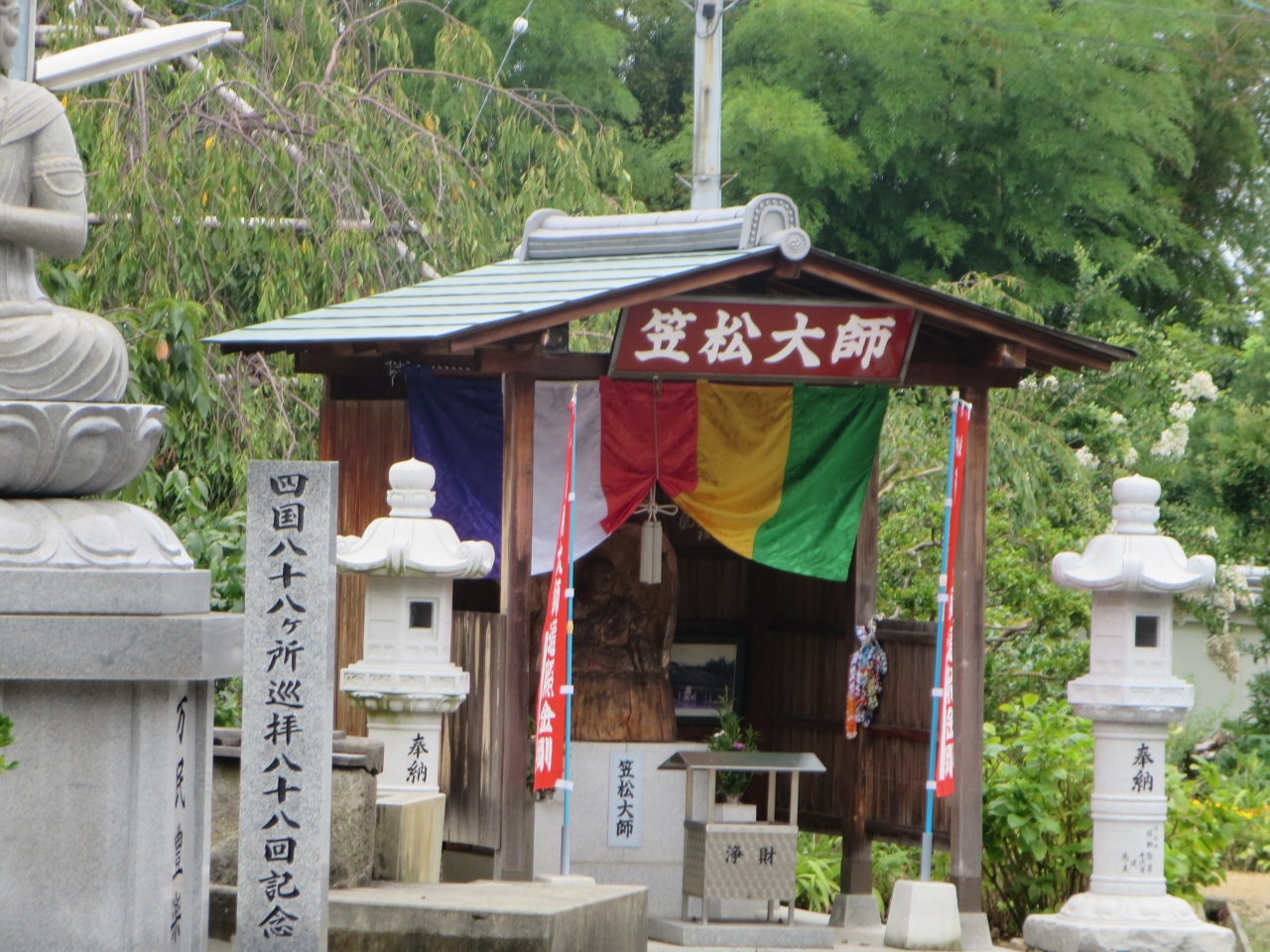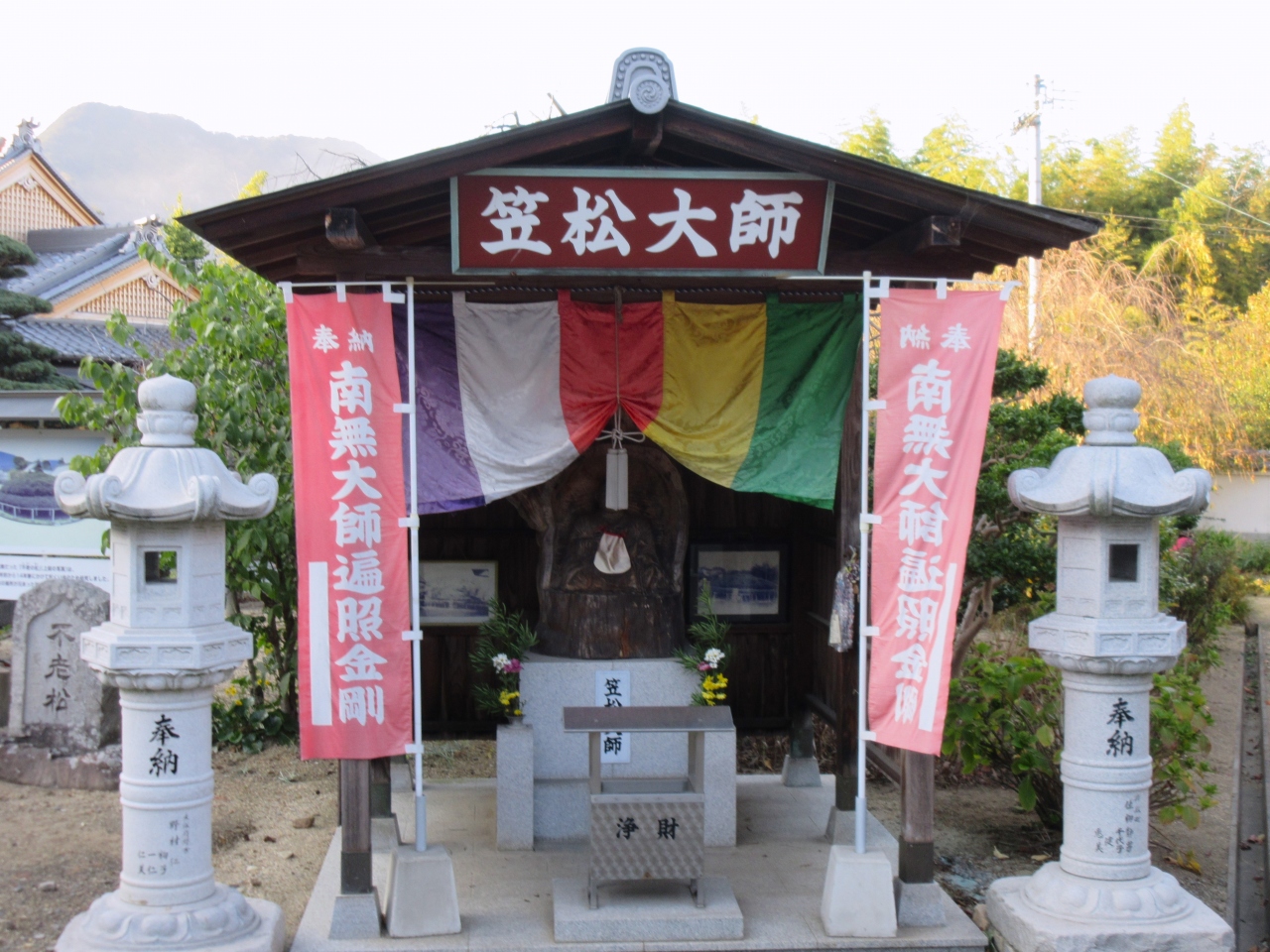 72番曼荼羅寺の山号は、73番札所の出釈迦寺と同じ「我拝師山」で、車で3分とすぐ近くにあります。 境内にかつて「不老松」... 続きを読むと言って、樹齢1200年を超す弘法大師お手植えの松がありました。松食い虫に浸食されて、2002年(平成14年)に伐採されてしました。 でも、笠松と呼ばれていたその「不老松」の幹に弘法大師座像が刻まれて、安置されている「笠松大師」ができました。 閉じる