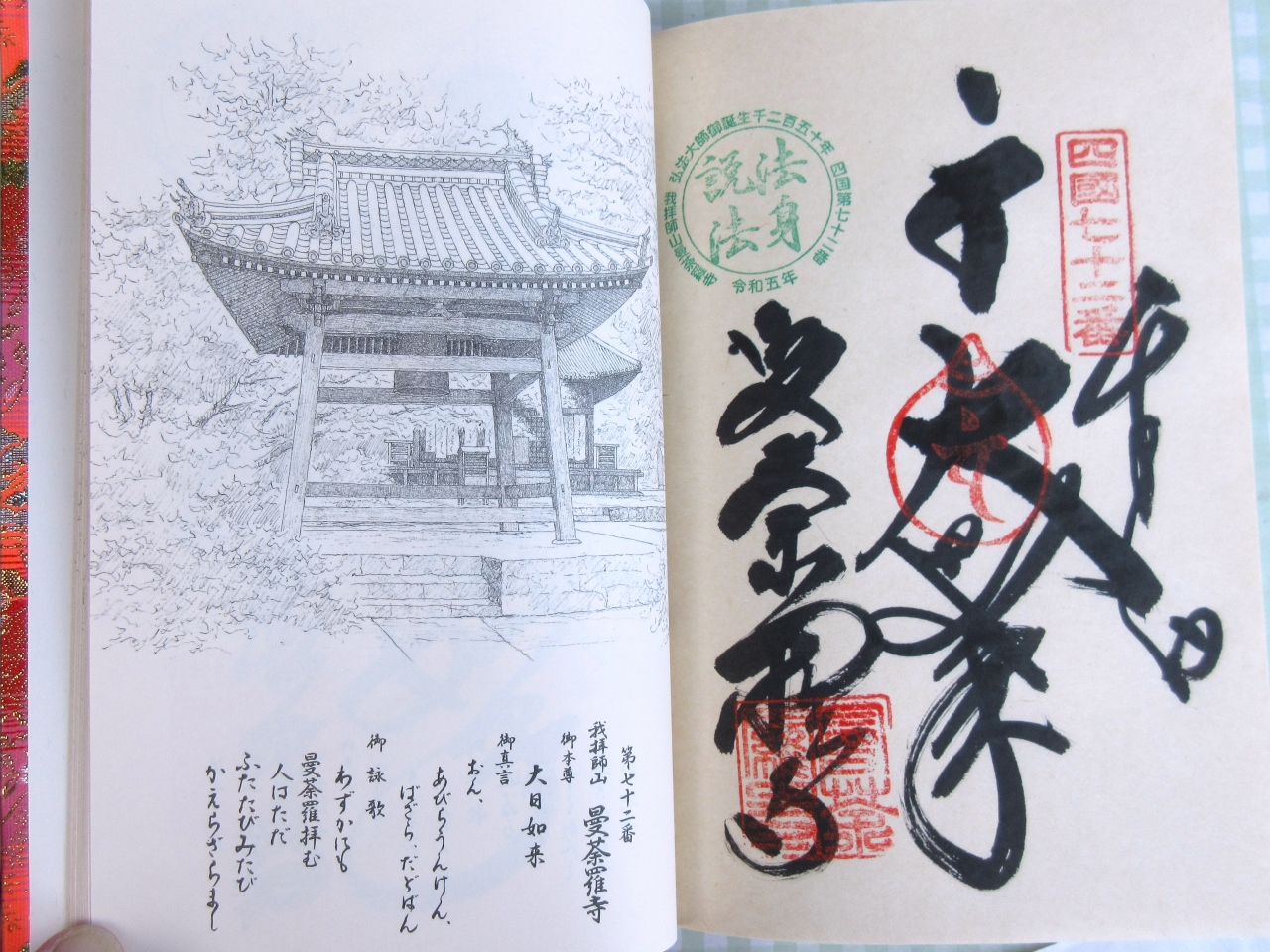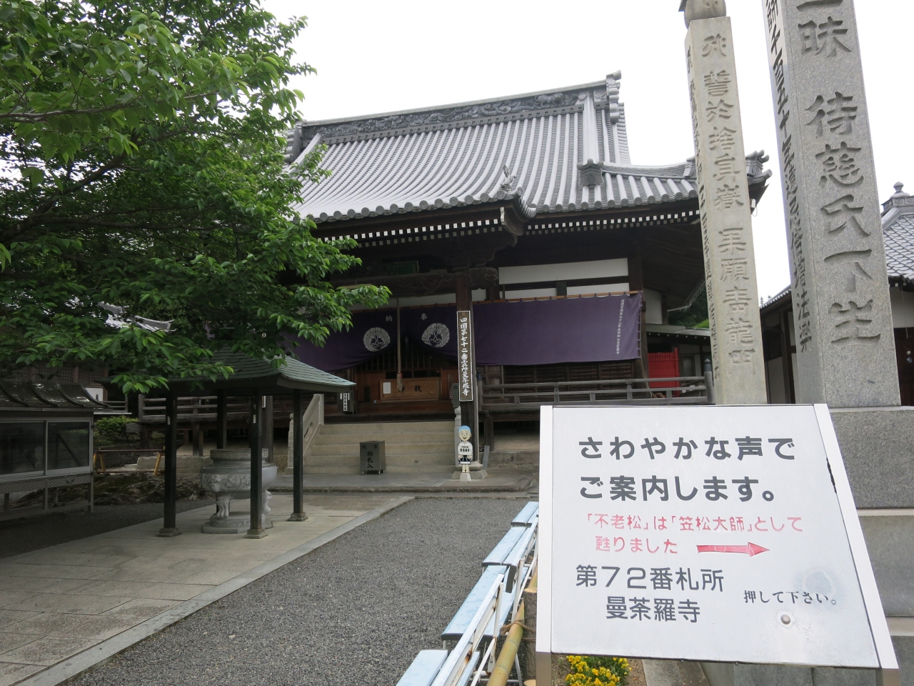 71番弥谷寺から11号線に引き返し丸亀方面に進むと峠を下るあたりで三差路があります。そこで11号線を外れ善通寺方面に少し進... 続きを読むんで山側に入り込んだ所に72番曼荼羅寺があります。この寺から76番金蔵寺まで狭い範囲で札所が続きます。