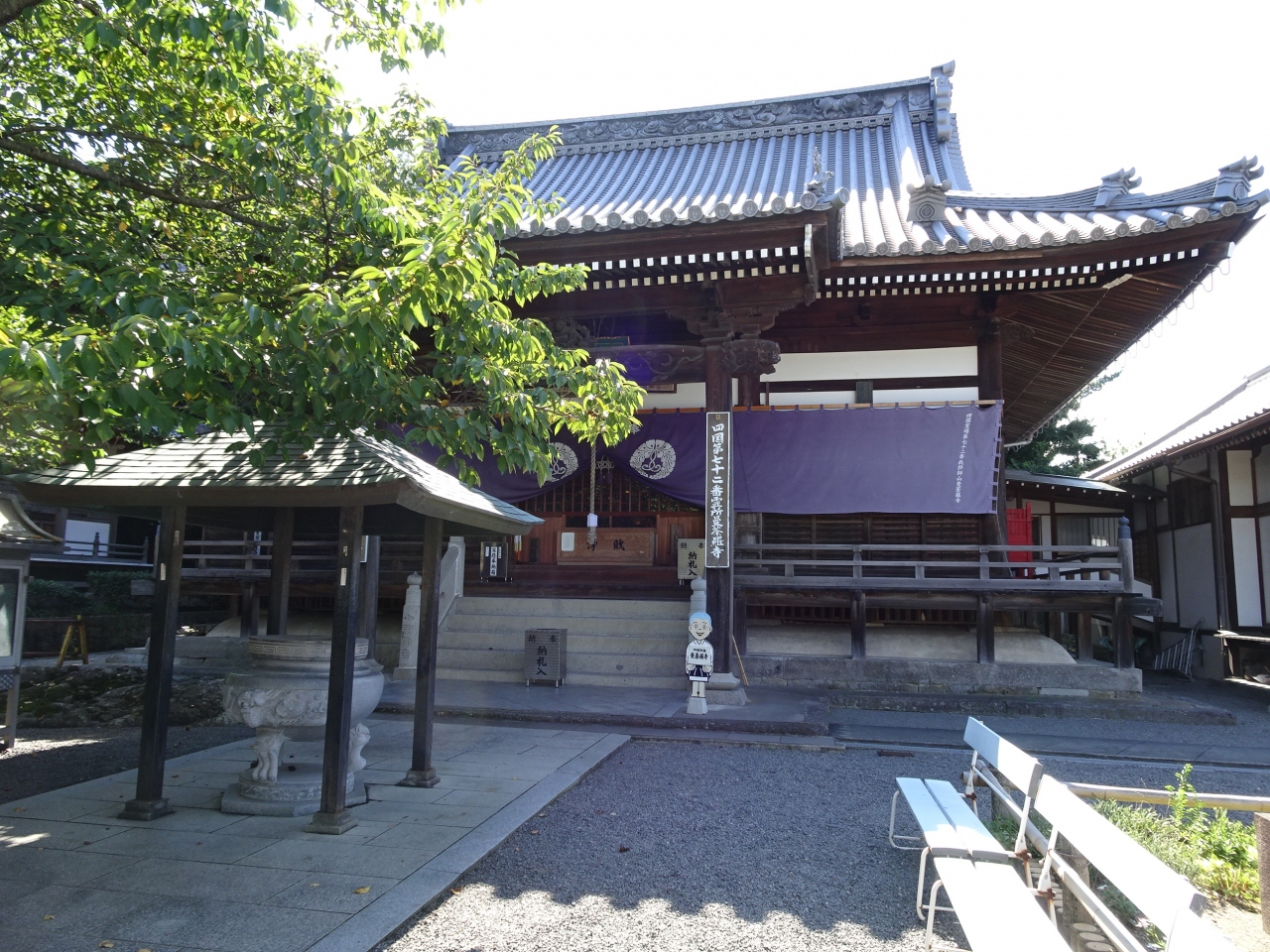 ... 続きを読む山門をくぐり小さな橋を渡ると正面が本堂、その手前左手に鐘楼、その奥に大師堂があります。本堂と大師堂の間に平安時代末期の西行がこの寺に通っては昼寝をしていたという“西行の昼寝石”がありました。