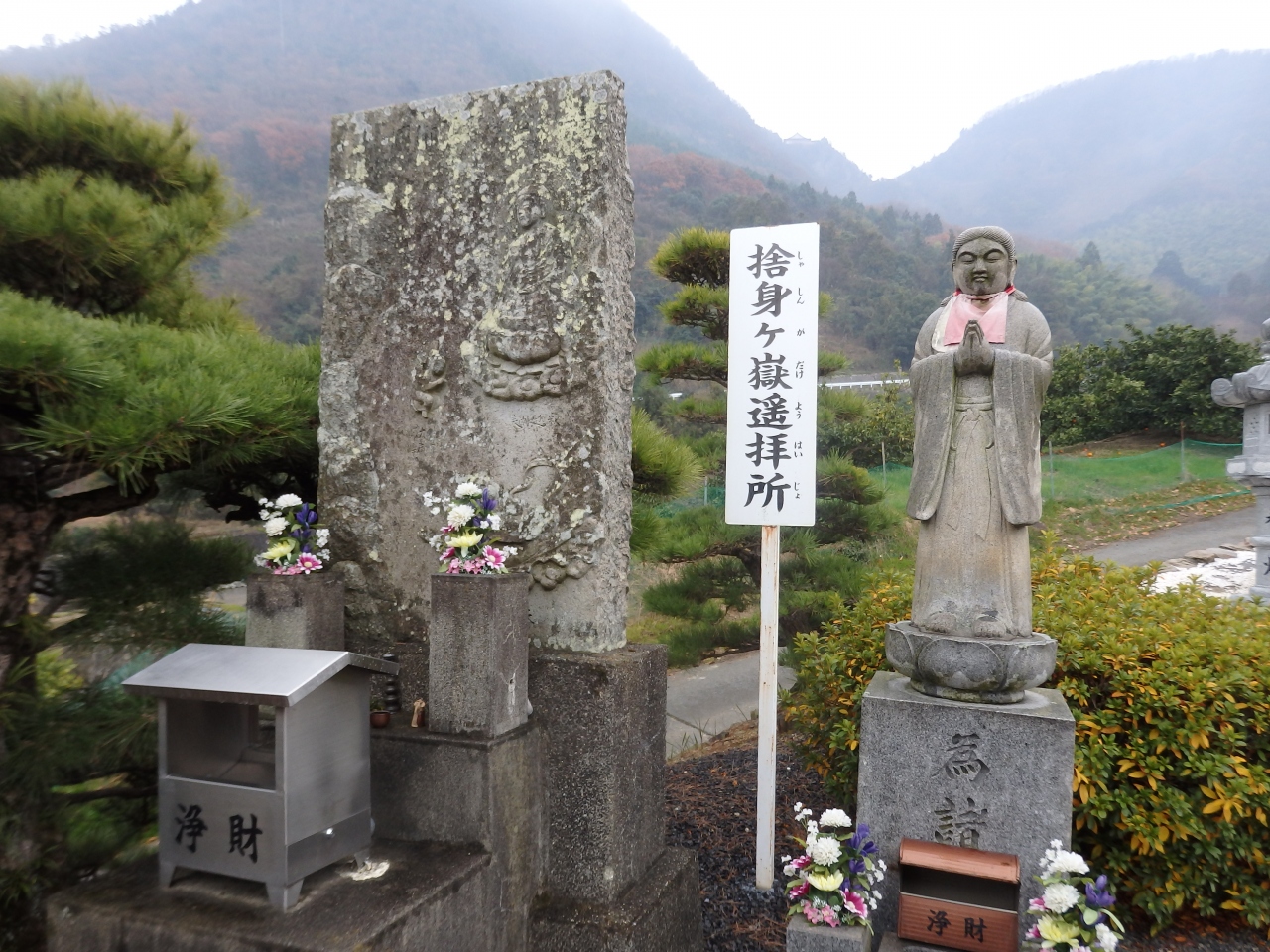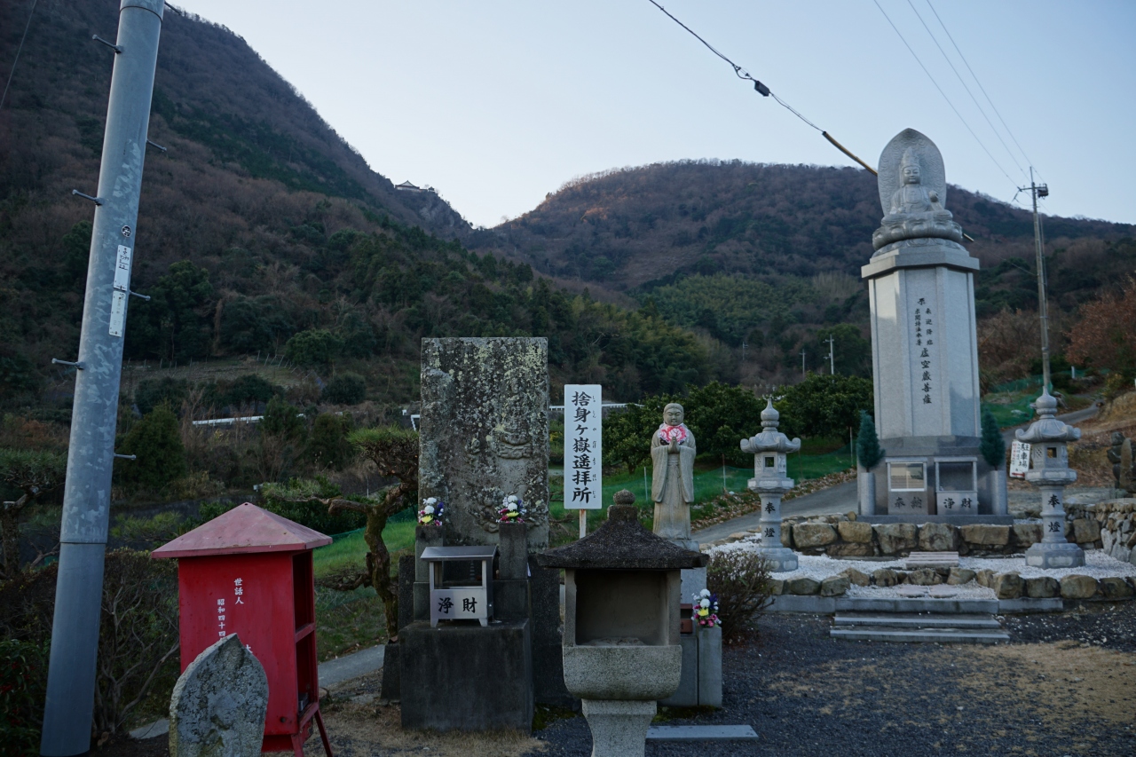 境内から50分ほど登った所に「出釈迦寺奥の院 捨身ヶ嶽禅定」があります。 7歳の弘法大師が「仏門に入って多くの人を救いた... 続きを読むい」と身を投げたところ、釈迦如来と天女が現れて救済したという言い伝えがある重要な場所です。 私はそこまで行けそうもないので、境内にある「捨身ヶ嶽遙拝所」で参拝しました。 境内の無人販売コーナーがあって、1袋200円という安さにびっくり! 四国は本当にみかんが美味しくて、安くて、うれしかったです。 閉じる