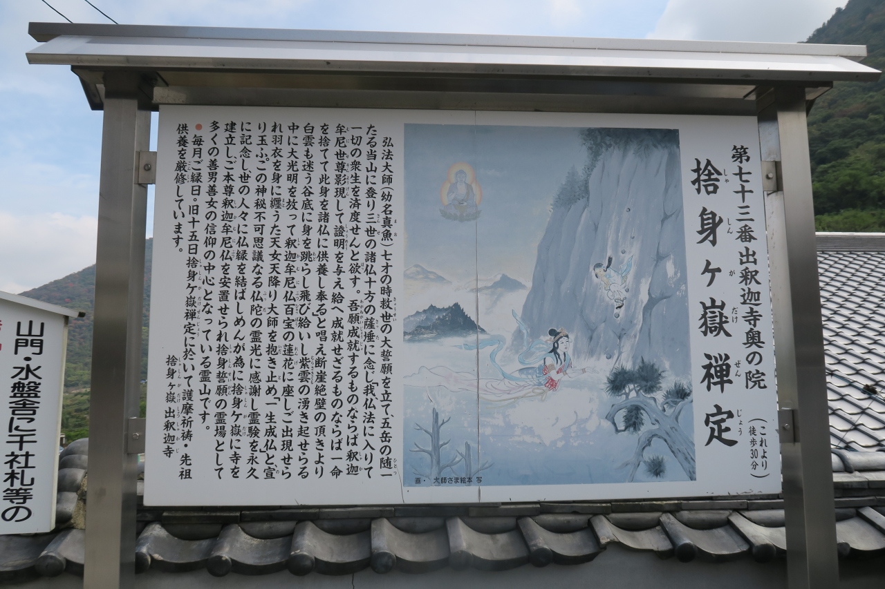 7歳の弘法大師が「仏門に入って多くの人を救いたい」と身を投げたという「出釈迦寺奥の院 捨身ヶ嶽禅定」があります