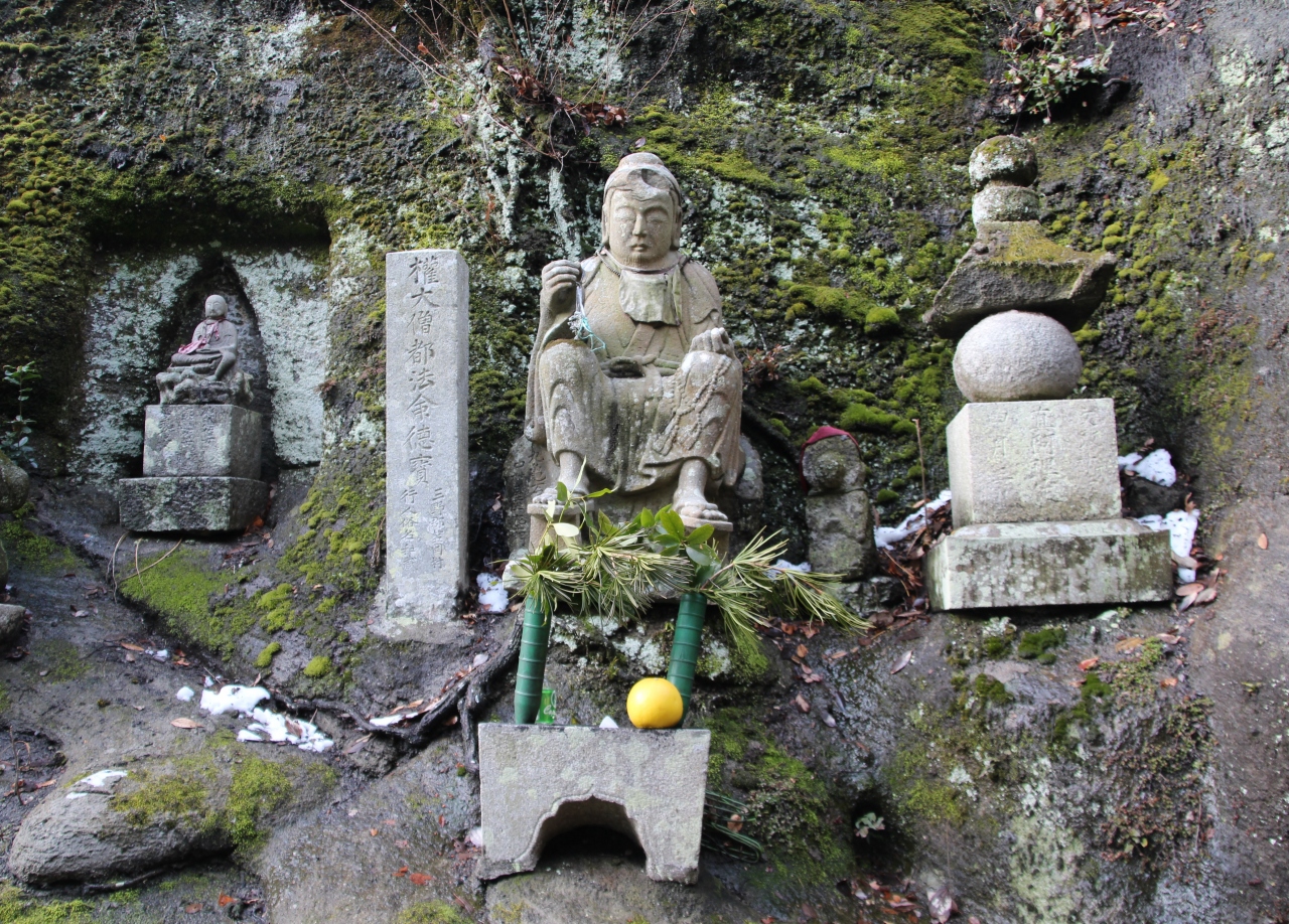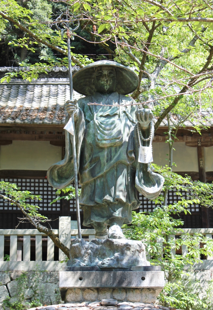 本堂までの途中に「岩窟の護摩堂」や「磨崖仏の阿弥陀三尊像」などの見所があり、ゆっくり巡拝しながら納経所に戻りましたが、納経所は大師堂、護摩堂、獅子之岩屋と内部で通じていて、すぐ近くでお参りすることができました。また近くに大きな修行大師像があり、お参りするとなんとなく感じるものがありました。