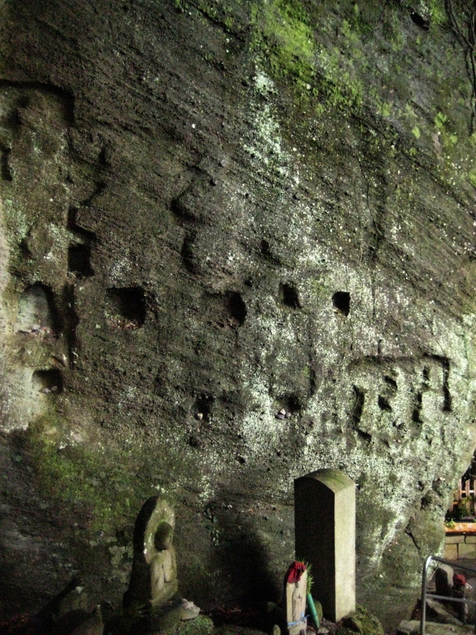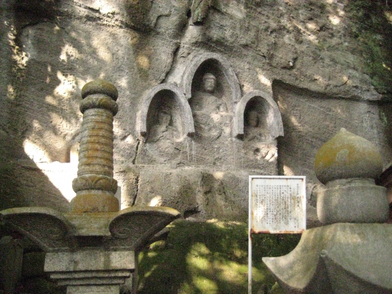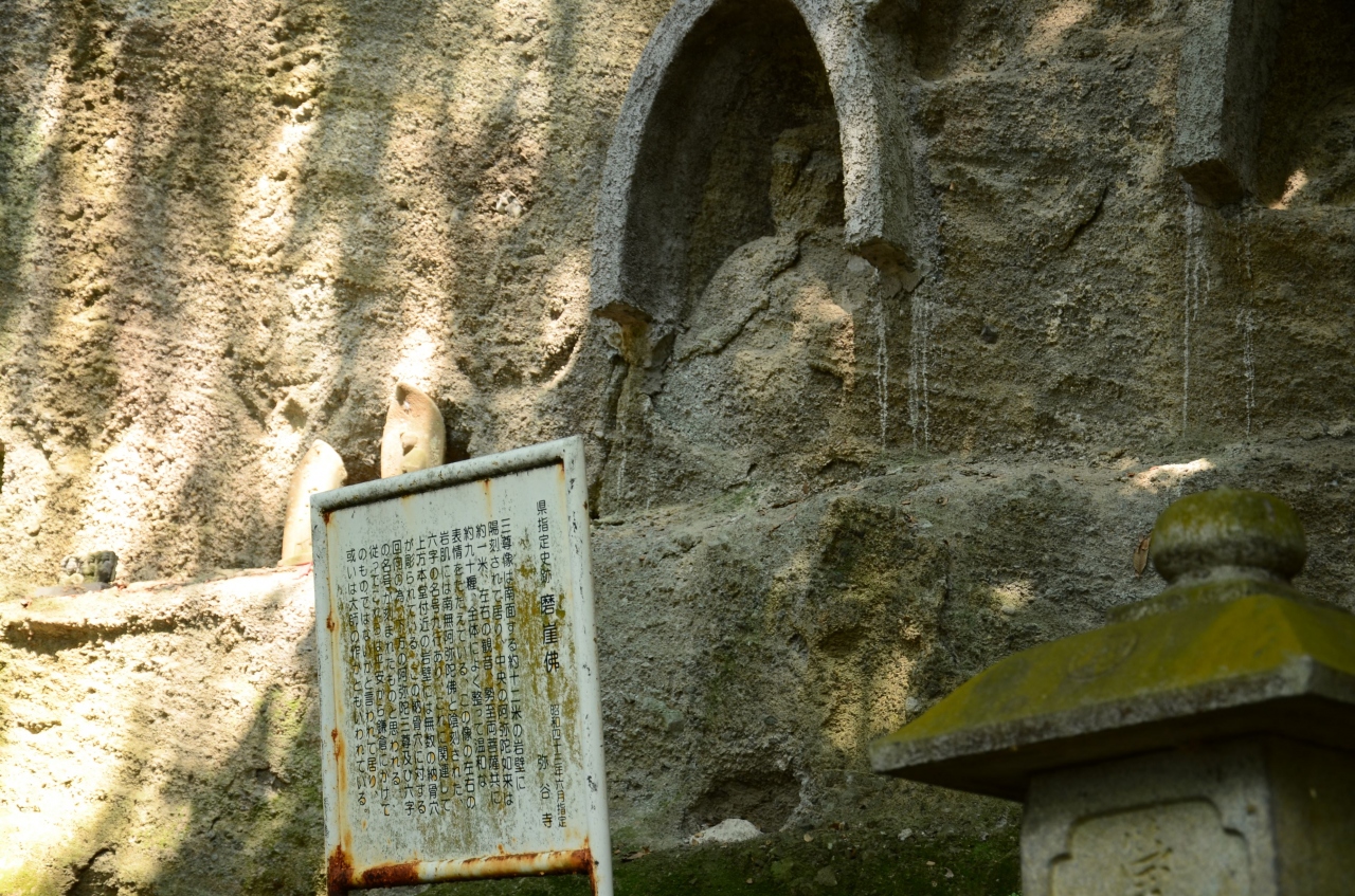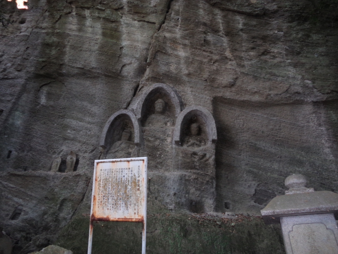 本堂手前の岩壁に磨崖仏を見ることができます。もちろん参拝しましたよ。