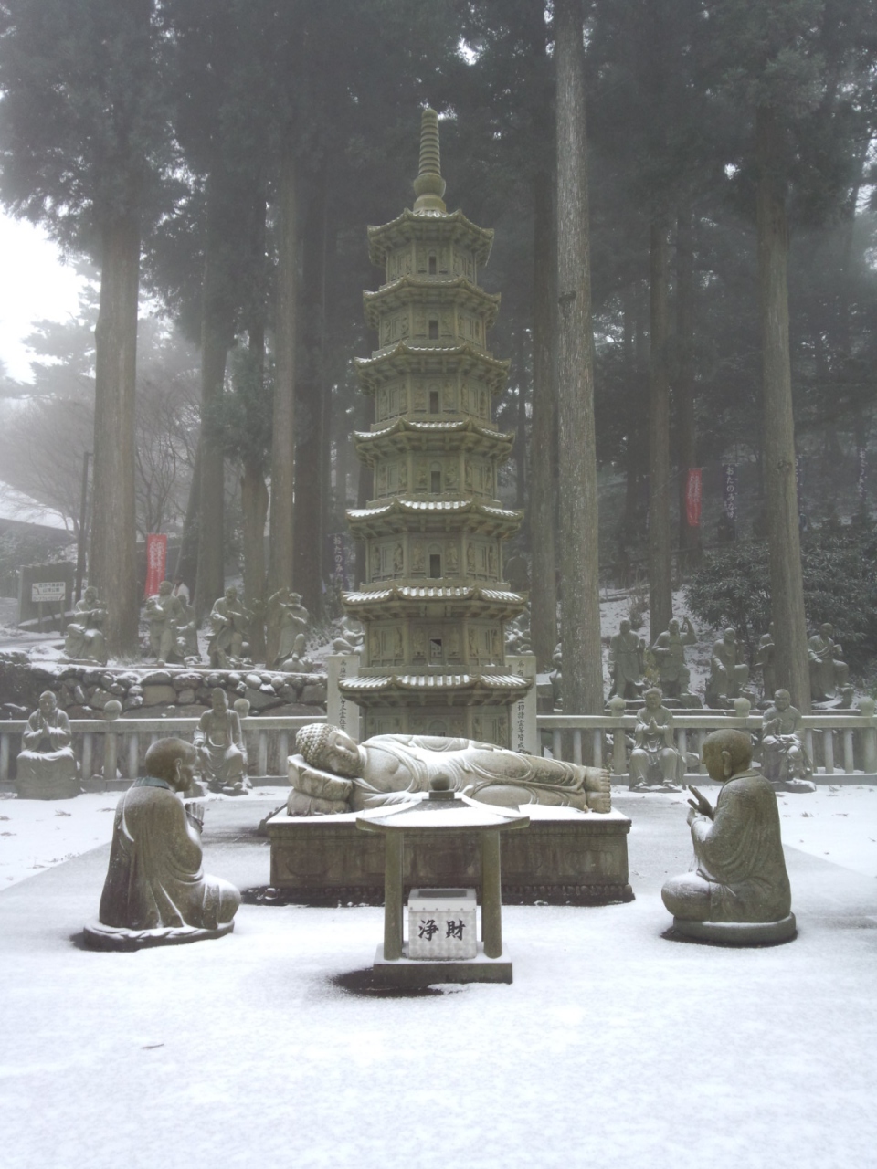 ロープウェーから堂宇までには等身大の五百羅漢像が並んでいます。かなりリアル・・