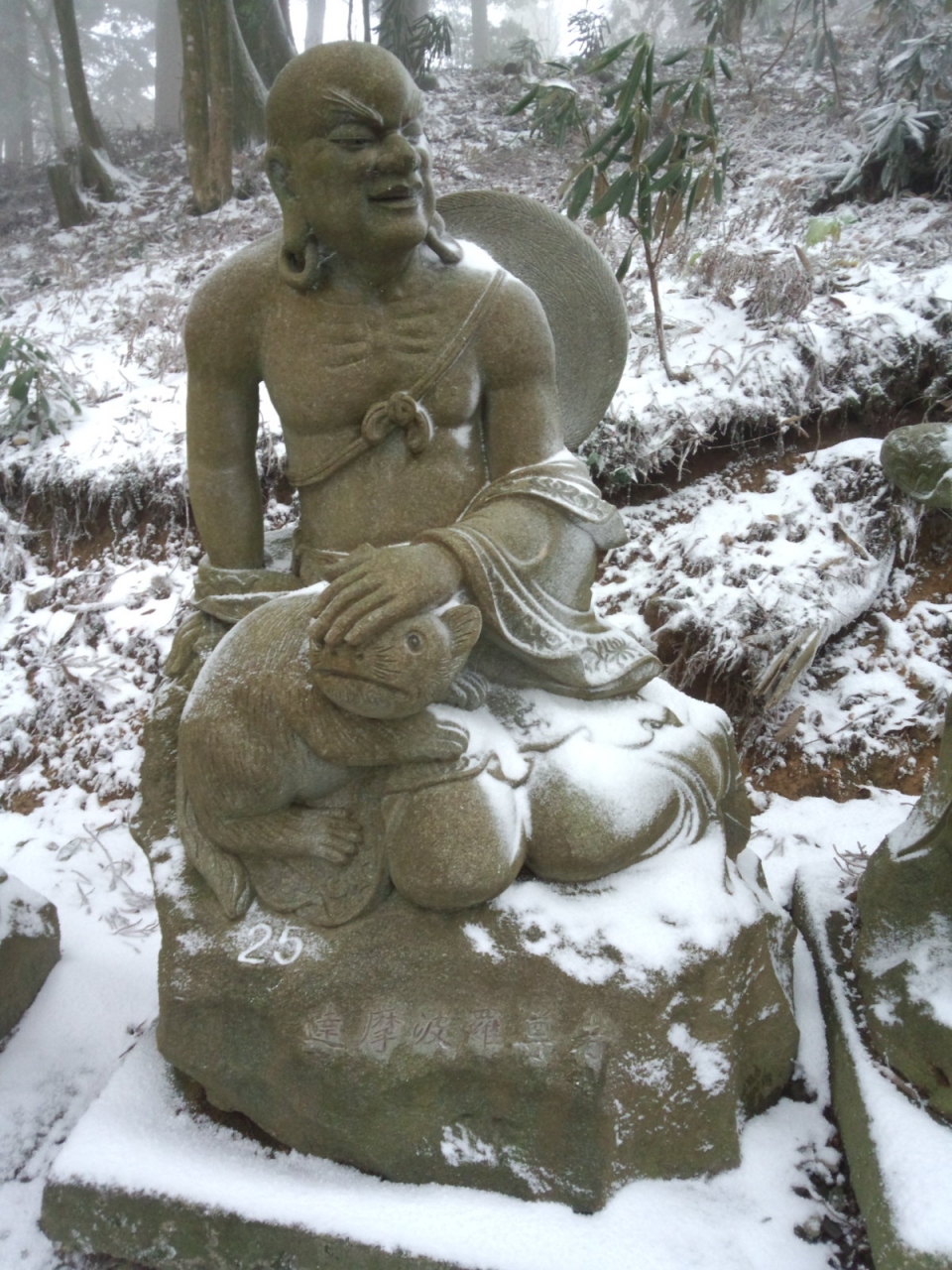 でも山頂には雪が降っており、そんな装備をせずブーツで行った私は転倒しないように必死・・