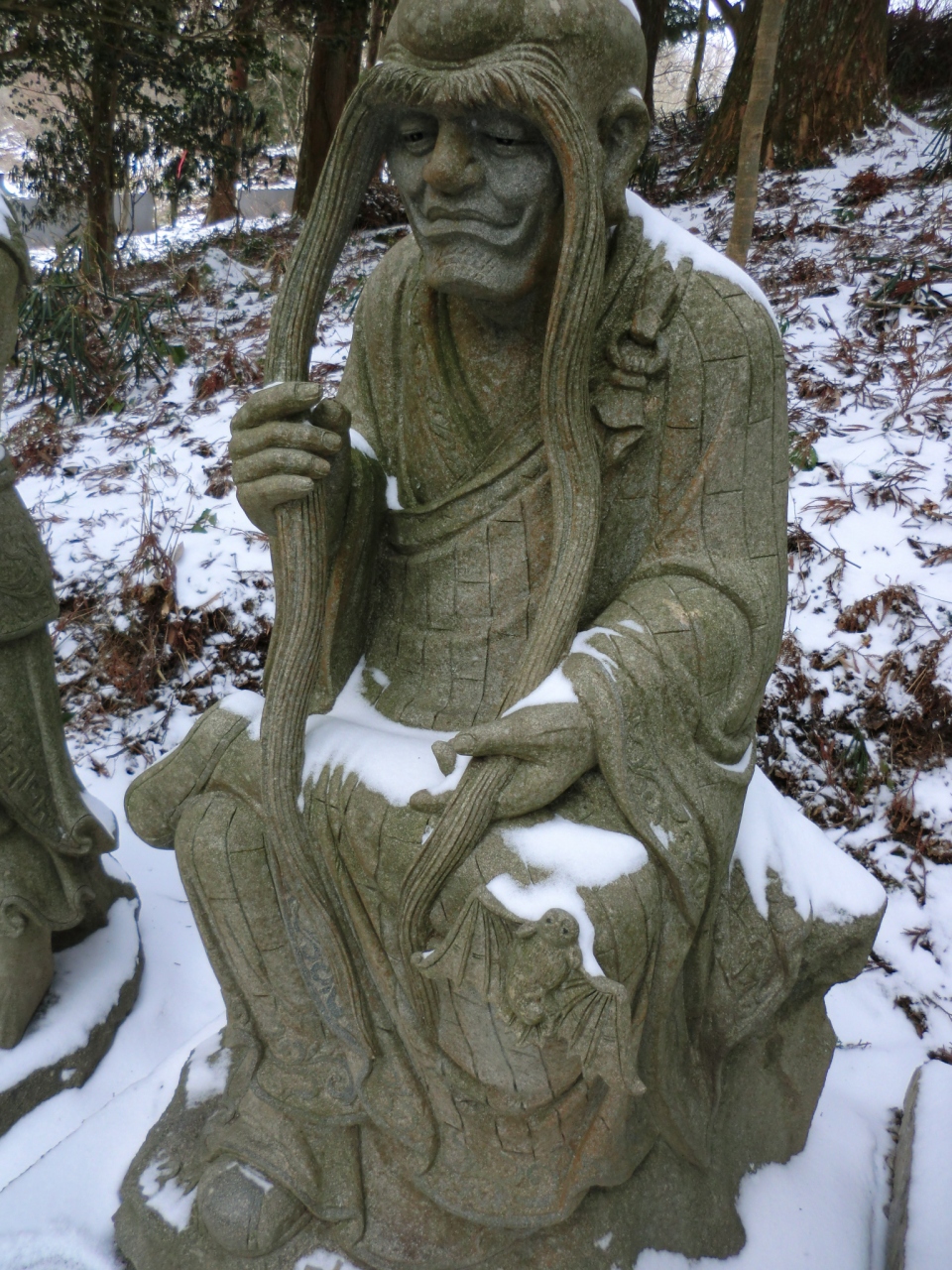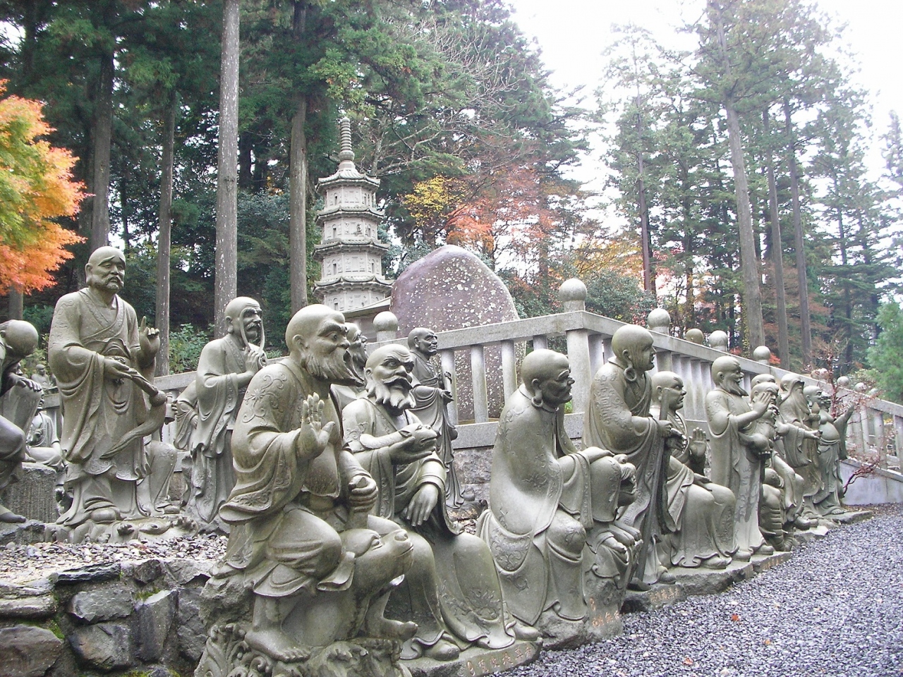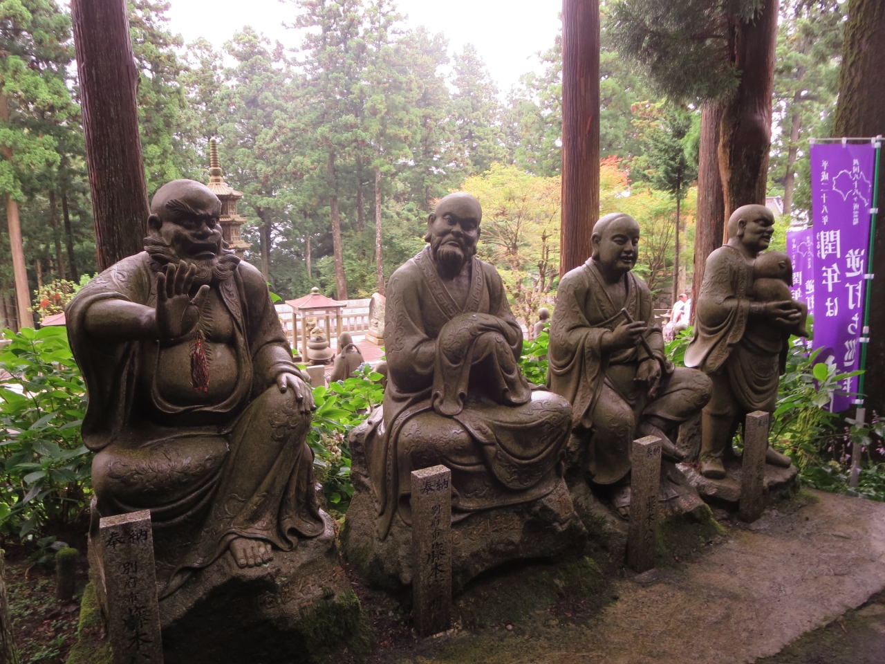 寺まで続く道々に羅漢像がいたるところに配置されちょっとした石屋の展示場かと見紛うほどです。