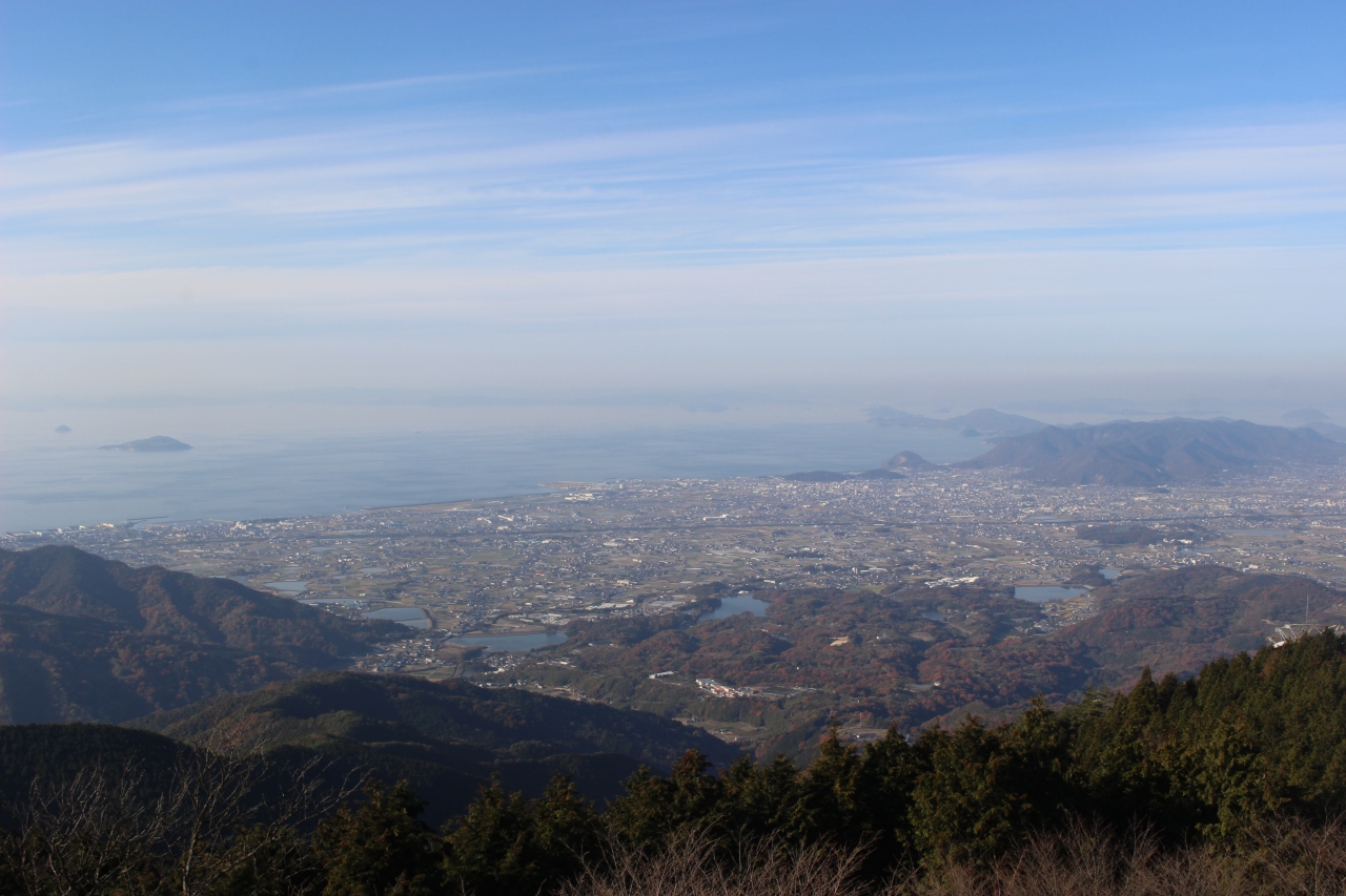 ロープウェイで山頂に上がると目の前に人工スキー場が広がっています。 また眼下には観音寺側の景色も海の向こうまで見渡せます。