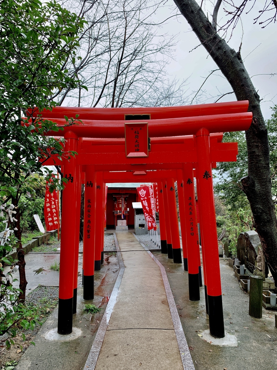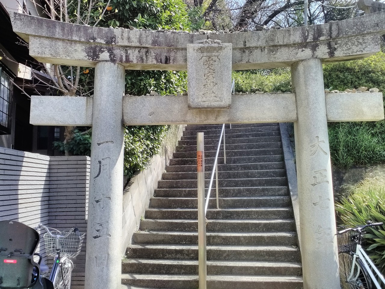 愛宕神社の3つの鳥居、室見川寄りの参道入り口にあります。