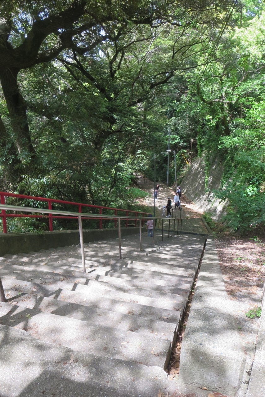 まずどこから行こうが急な坂です。ラフな格好をオススメします。