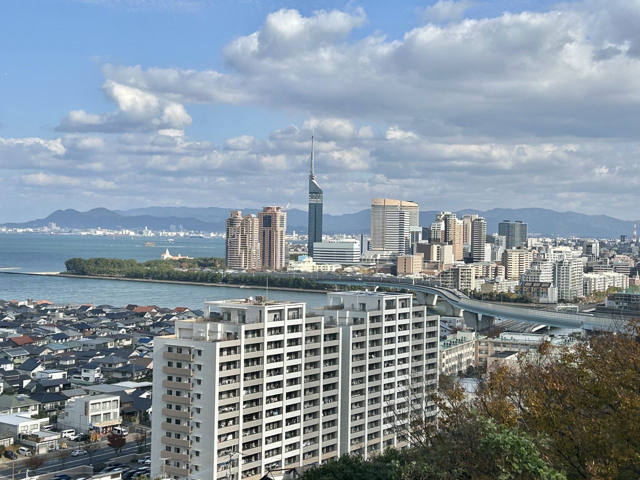 境内にたどり着くと博多湾や能古島や志賀島、そして近くには福岡市街、福岡タワーや福岡ドームをはっきりと見渡すことができ絶景で映え写真を撮るには最高なスポットでした。