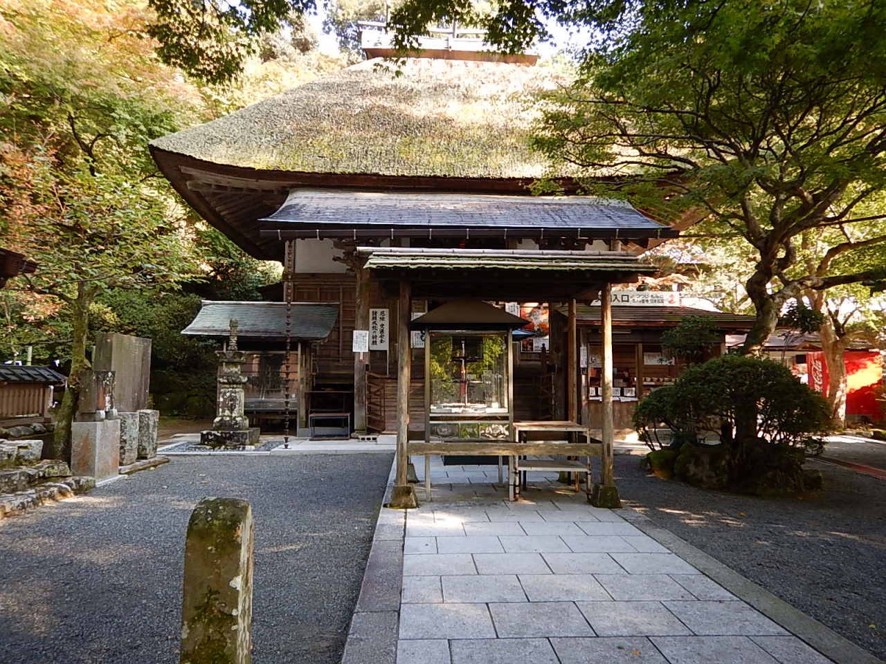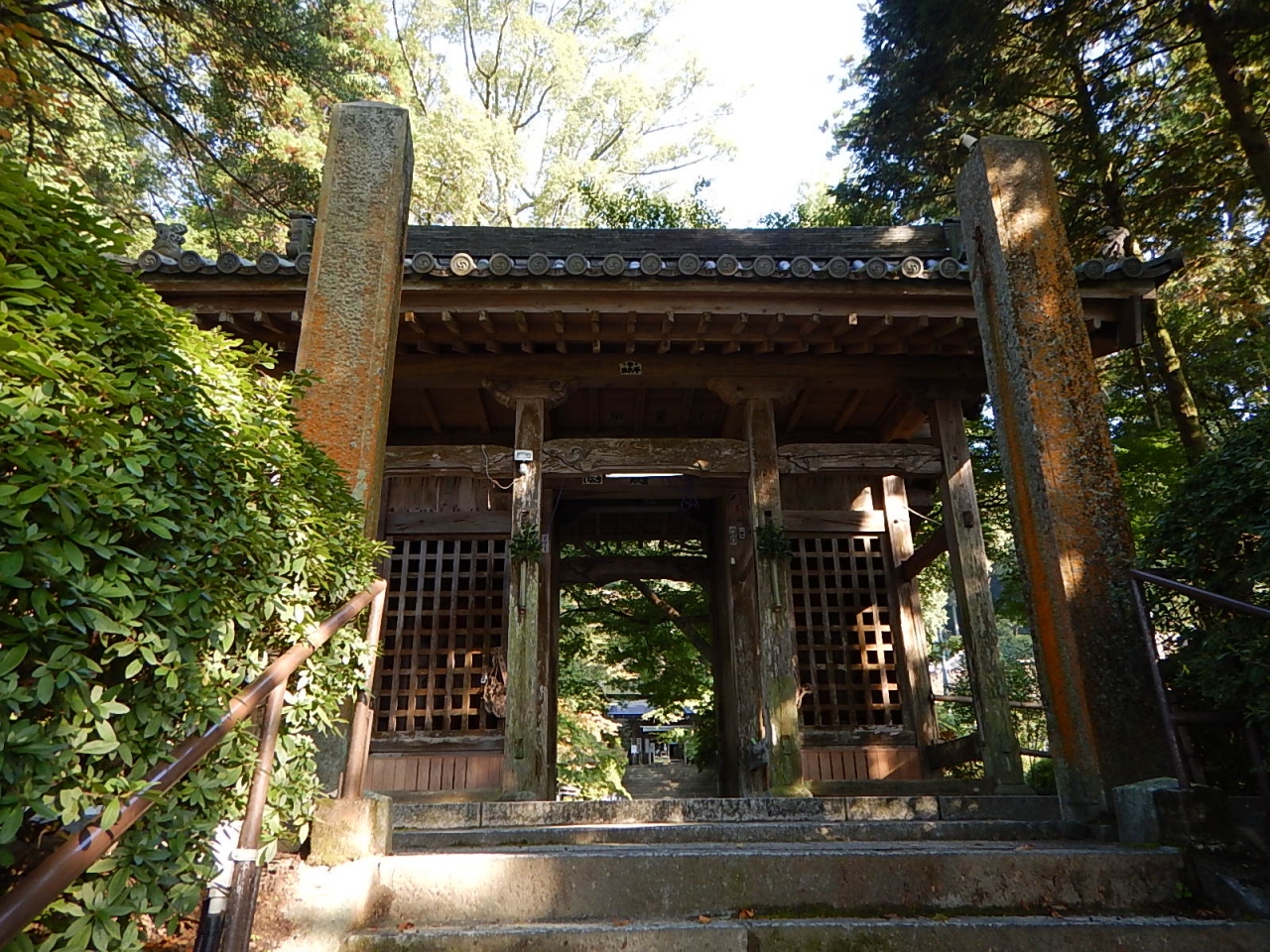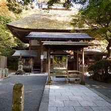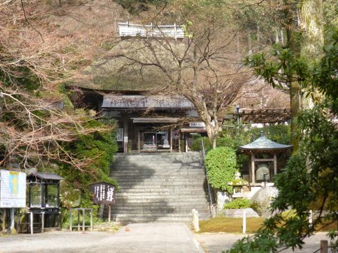長い階段を登り、山門をくぐると、木々に囲まれた境内はそれほど広くはないが、桧皮葺の本堂などはこじんまりとしていてなかなか風情がある。