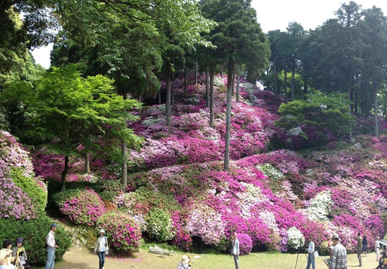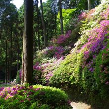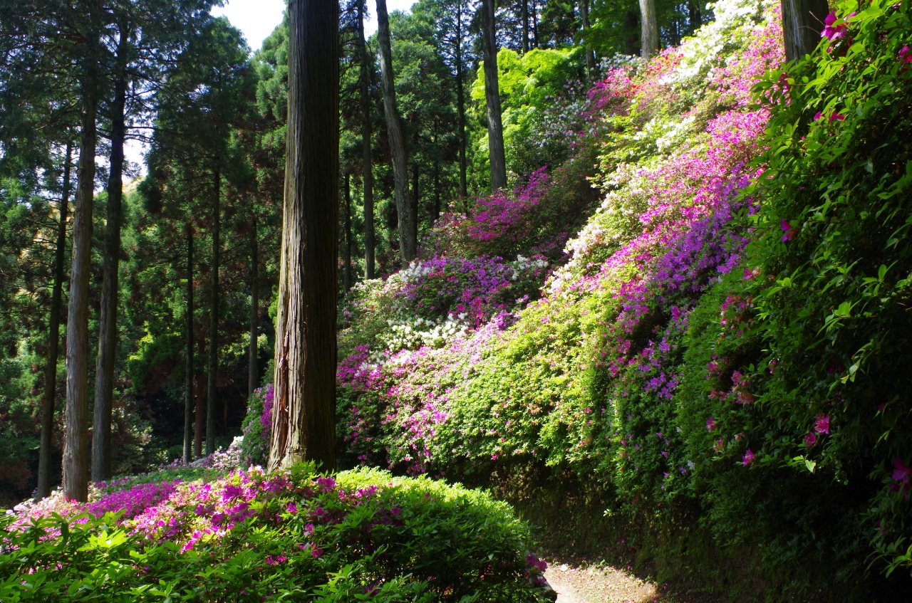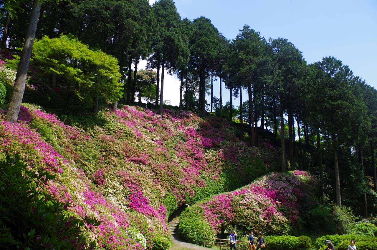 ツツジの時期は、とにかく、ずーっとツツジ。これでもか!というほどたくさんのツツジが咲いて、見事です。斜面に植わっているものも多いので、見上げるツツジもたくさんあります。