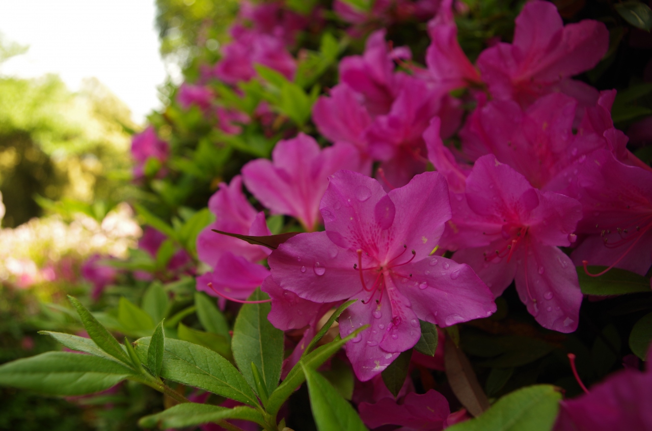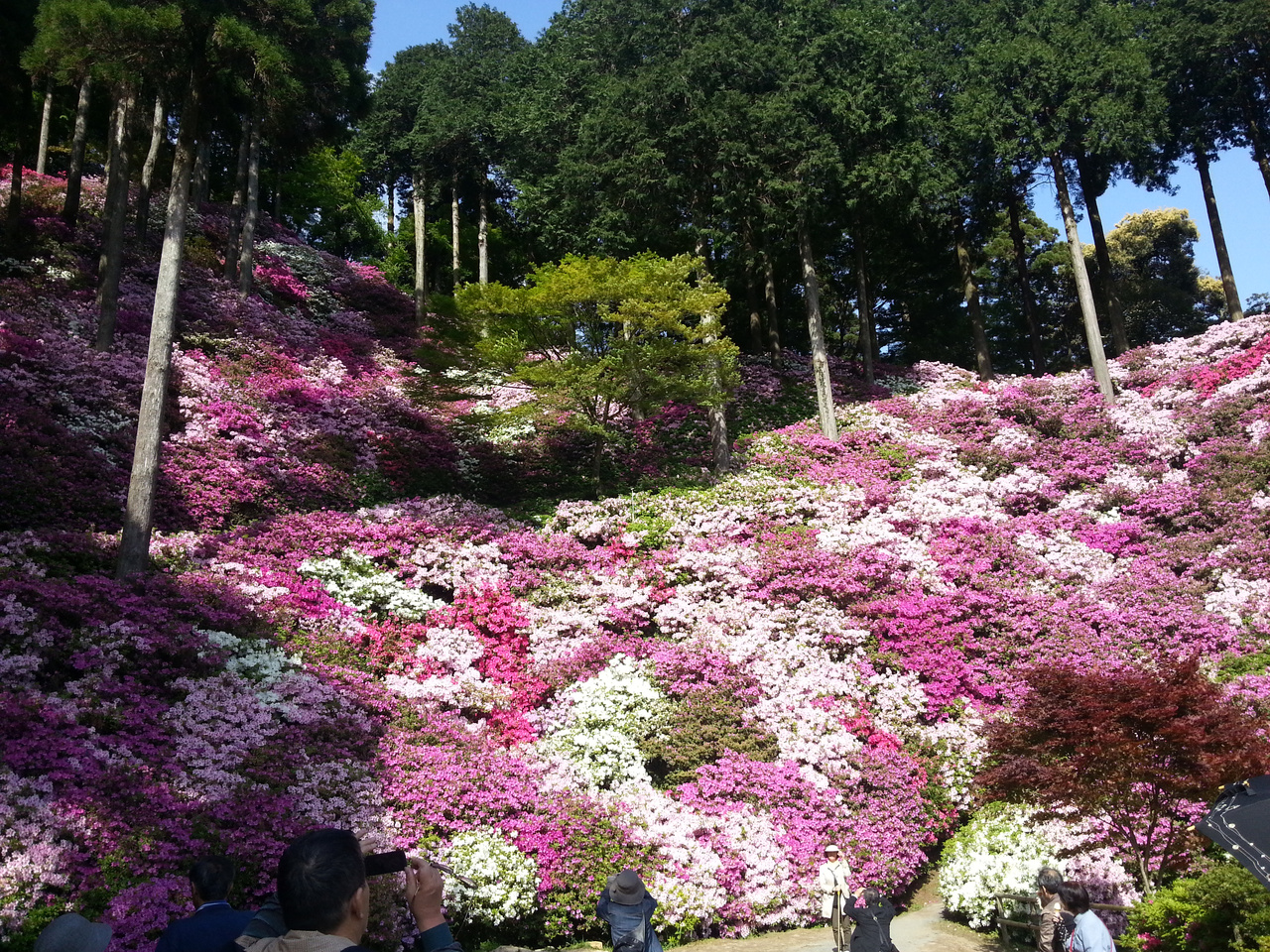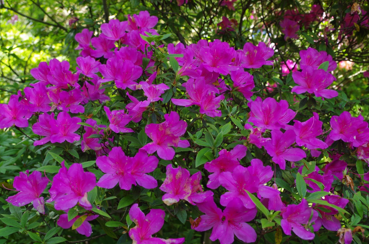 ツツジの時期は、とにかく、ずーっとツツジ。これでもか!というほどたくさんのツツジが咲いて、見事です。斜面に植わっているものも多いので、見上げるツツジもたくさんあります。
