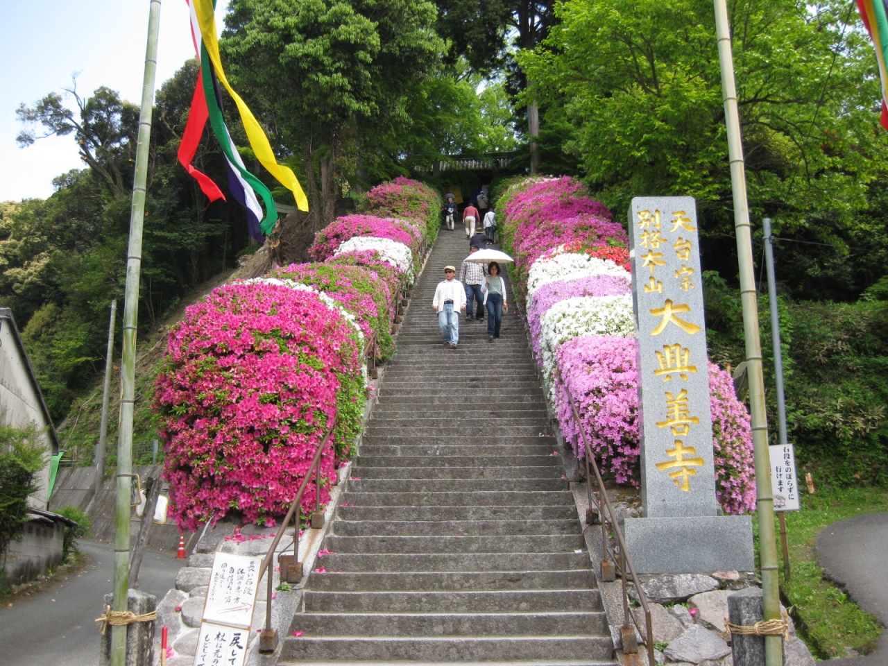行基開創の古刹で、5万本にもおよぶつつじの名所、秋には紅葉も楽しめます。国宝殿の広目天、多聞天の仏像が国の重要文化財となっています。 また、大興善寺契山として平成24年7月に全国で115番目の「恋人の聖地」に選定されました。