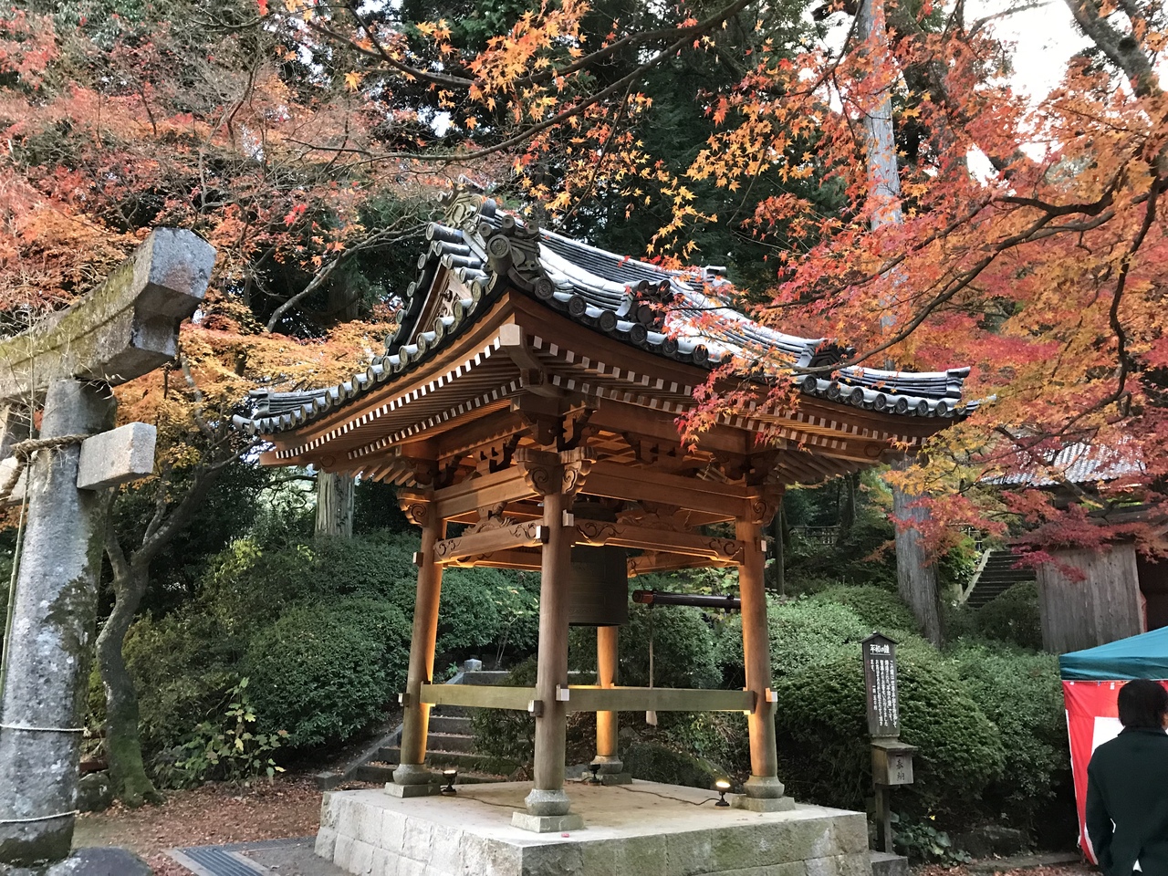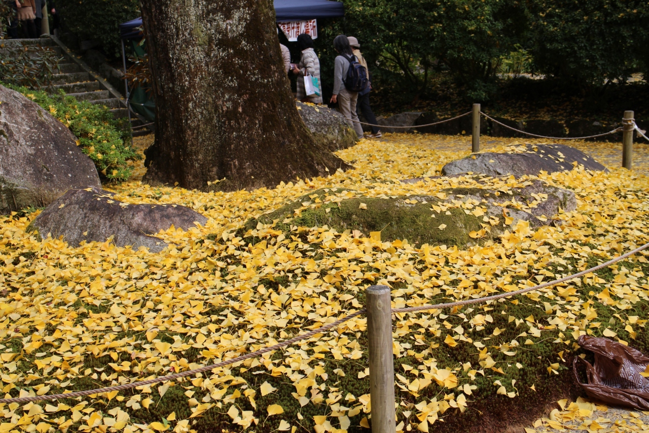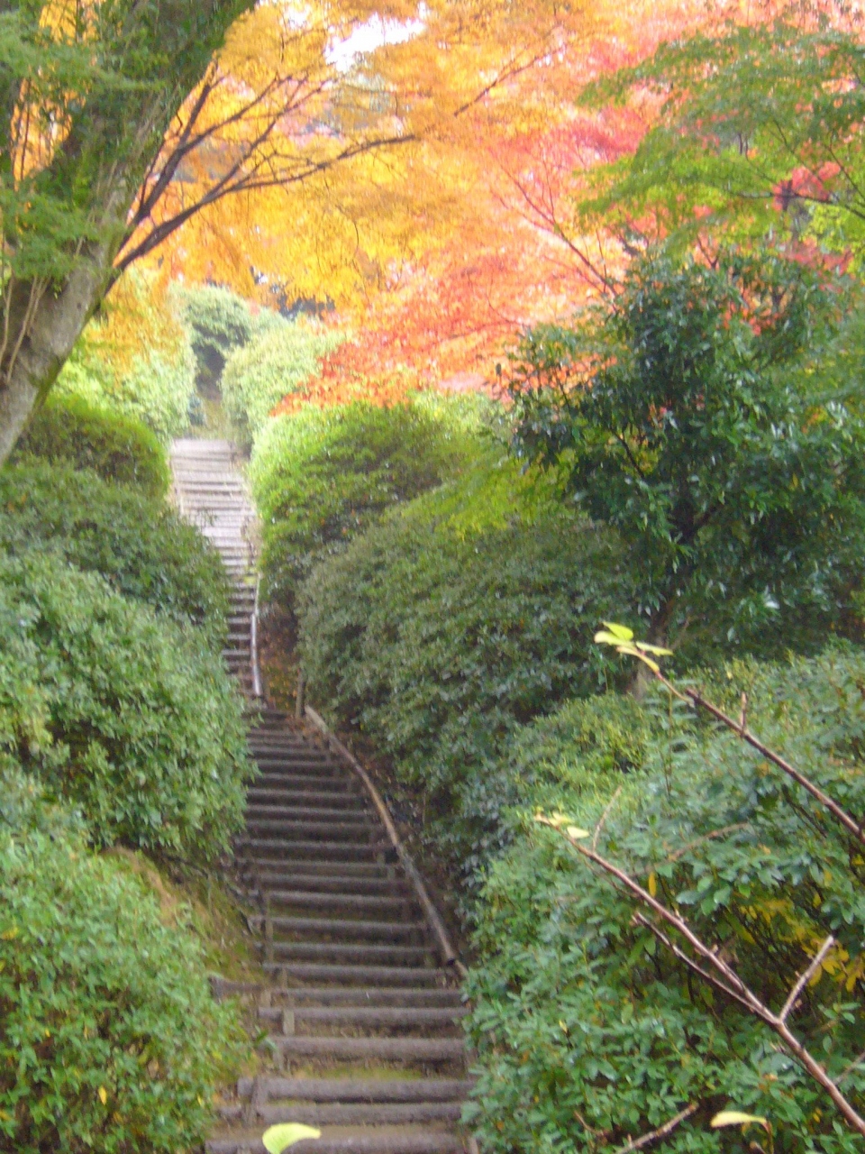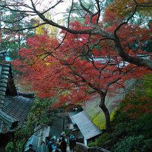 少々長い階段をあがると、ちょっと開けた場所にでます。そこにはとても立派な銀杏が。これが紅葉時期になると、一面を黄色く染め上げます。銀杏の絨毯みたい。そして、左右には美しいモミジが。この、黄色と赤、そして他の木の緑がグラデーションみたいに見えたりします。