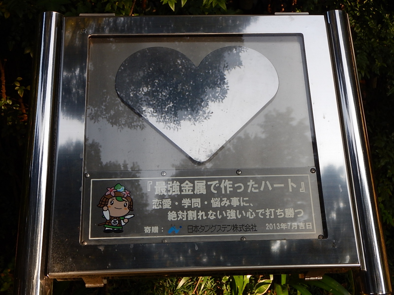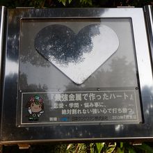 ここには最強の金属でつくられたハートのオブジェもあったりする(絶対割れないという験担ぎ)。
