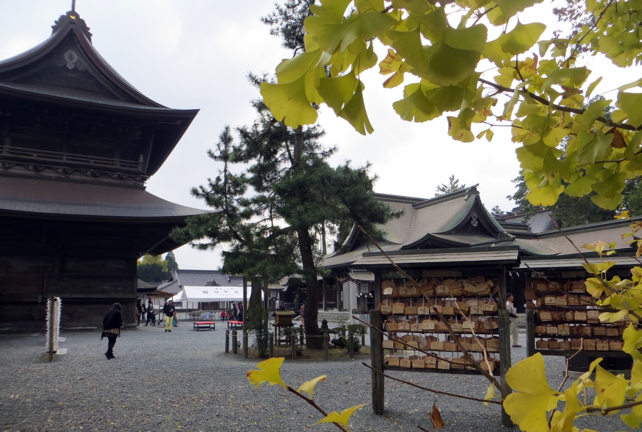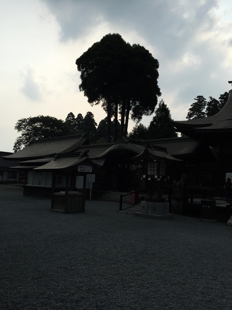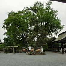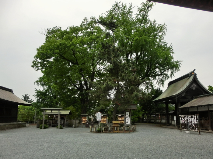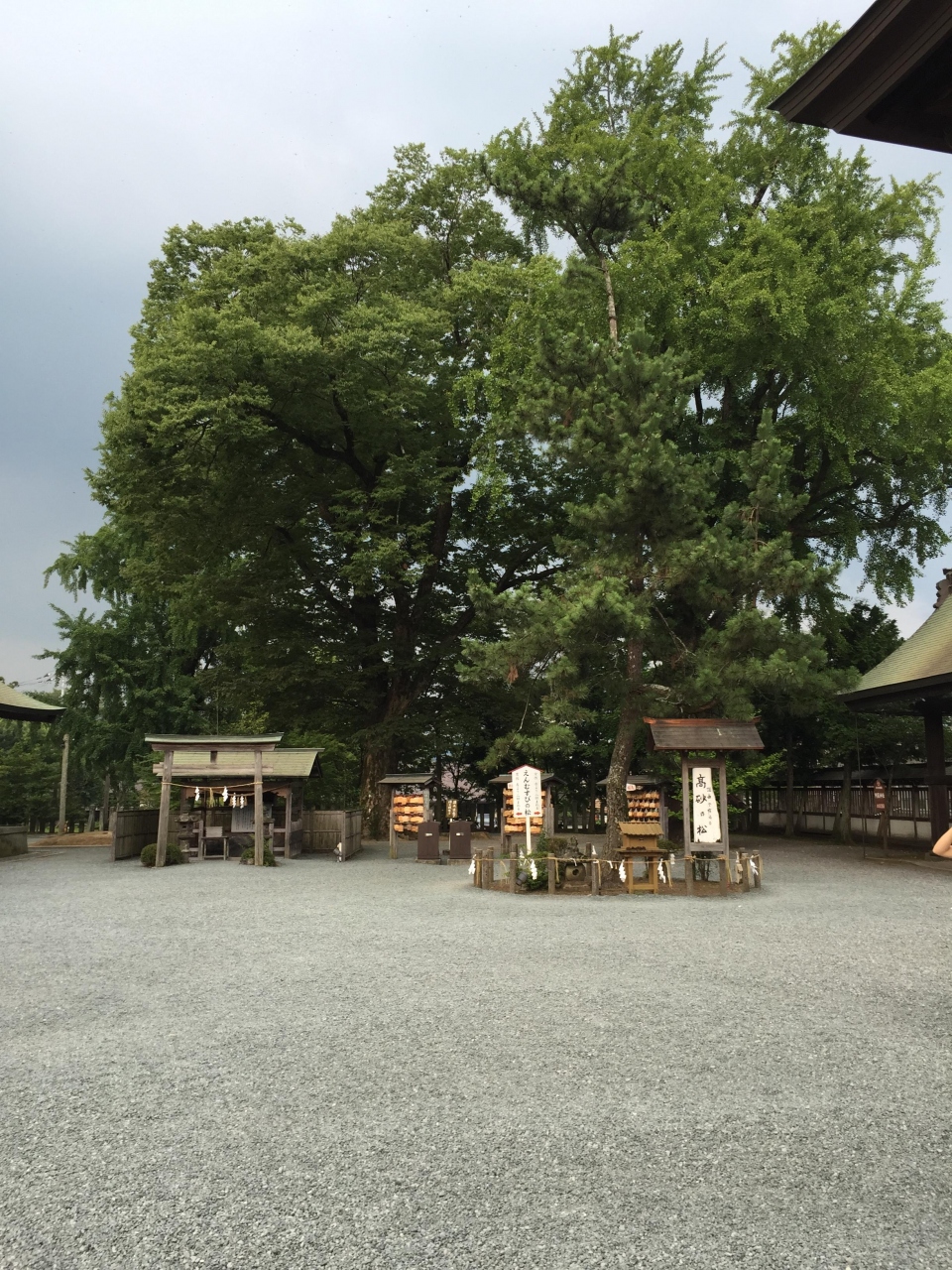楼門をくぐると正面に本殿がある。ここの神社は、12神を祀っているらしく、主神は、健磐龍命である。昔、阿蘇外輪山の内部が、まだ湖だったころ、ここを田畑にしようと、今の立野付近を蹴やぶって水を抜いたという神話のある神、それが、健磐龍命その神である。 本殿で手を合わせた後、神社に向かって右手に行ってみよう。まず、【願掛け石】というものがある。この大きな石を三回撫でて願いを唱えると願いがかなうらしい。 そして、その横には、【縁結びの松】というものがある。縁結び…。 これだけを聞くと最近流行りの縁のない人を呼び込む策? と、思われがちだが、ここは違う。 ここの松は、結婚披露宴などで時々耳にする『高砂や~♪、この浦舟に帆を上げて~♪…』と歌われている松なのだそうだ。 この松を、男は左から2回、女性は右から2回まわるとご利益があるとされる。 たまたま、同時に知らぬ男女が真剣にこの松を回っていれば、どこかの位置で男女が顔を見合わせるようにぶつかるわけで… この人が、神が出会わせてくれた異性なのか… もし、そういうタイミングが有れば、勇気を出して声をかけてみるべきであろう。 (以外に、回っている人、多いんだよ)