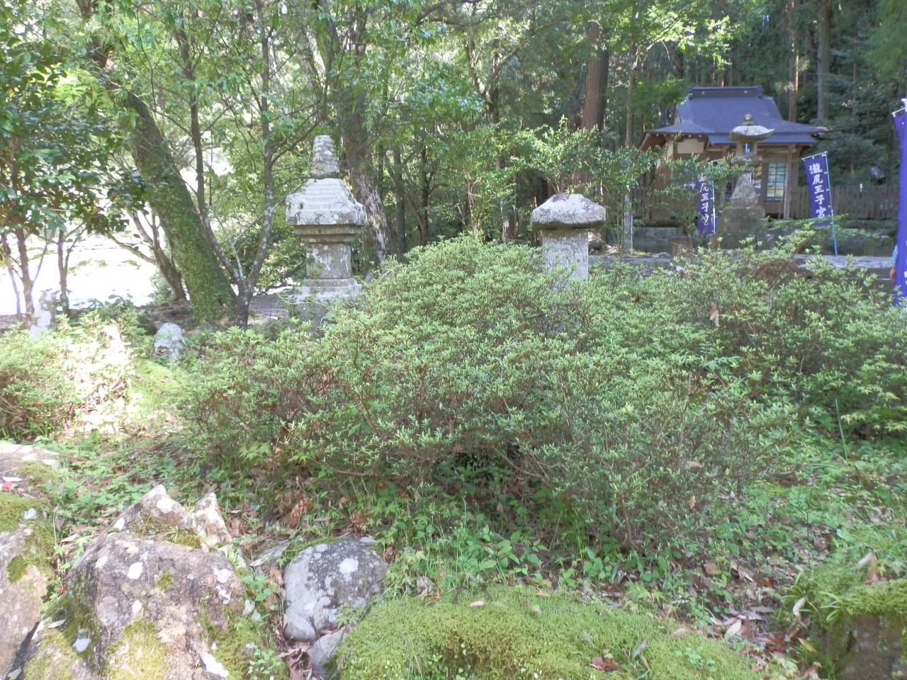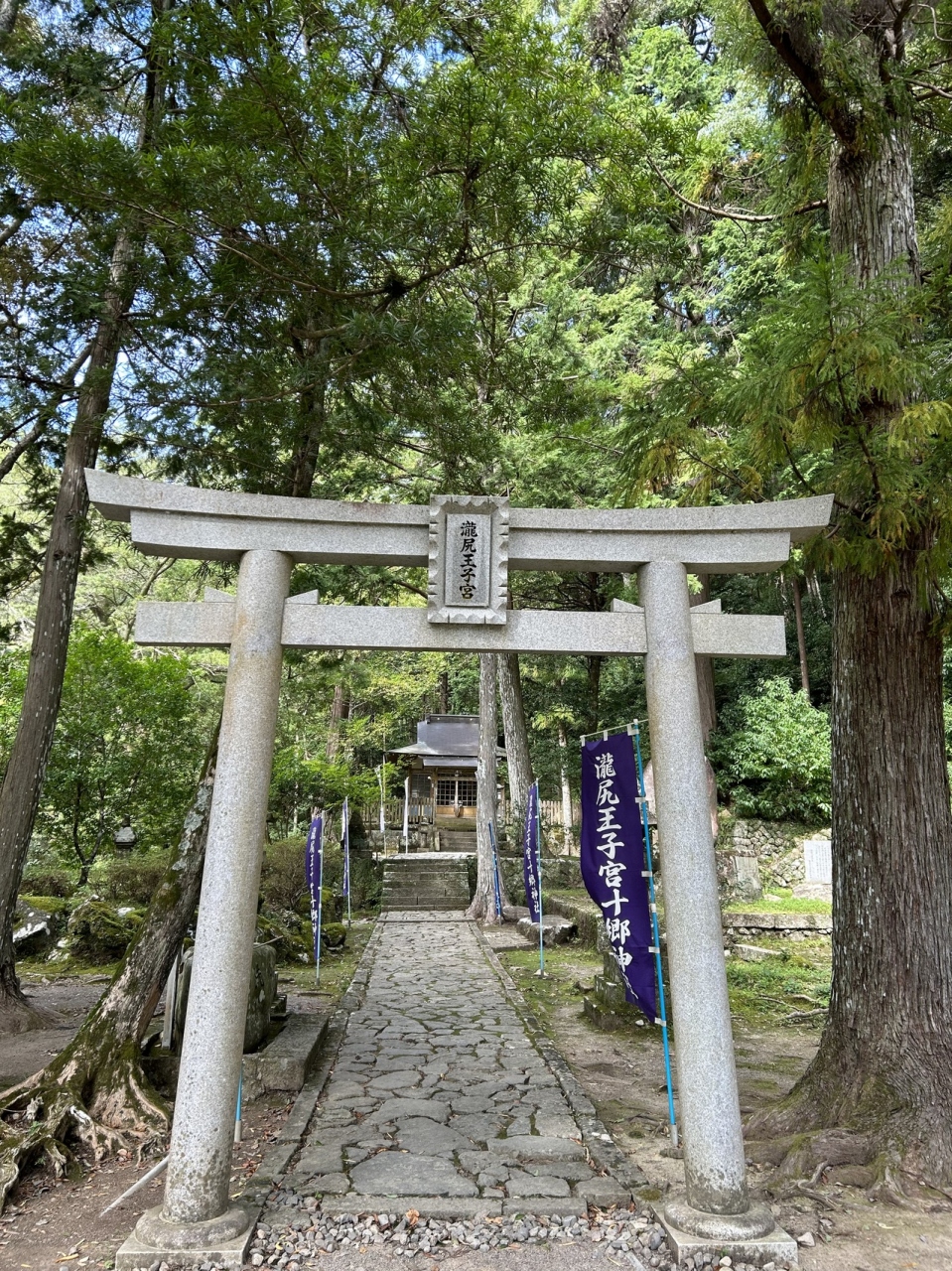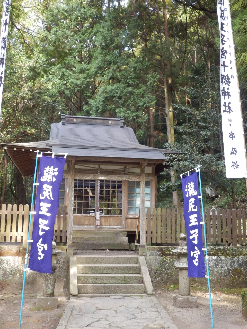 古道にはおよそ100の王子があり、その数の多さを示す言葉として九十九王子と呼ばれたいます。なかでも格式の高い5つの王子をして五体王子社というそうですが、滝尻はその一つ。現在では、森のなかにその跡を見ることができます。
