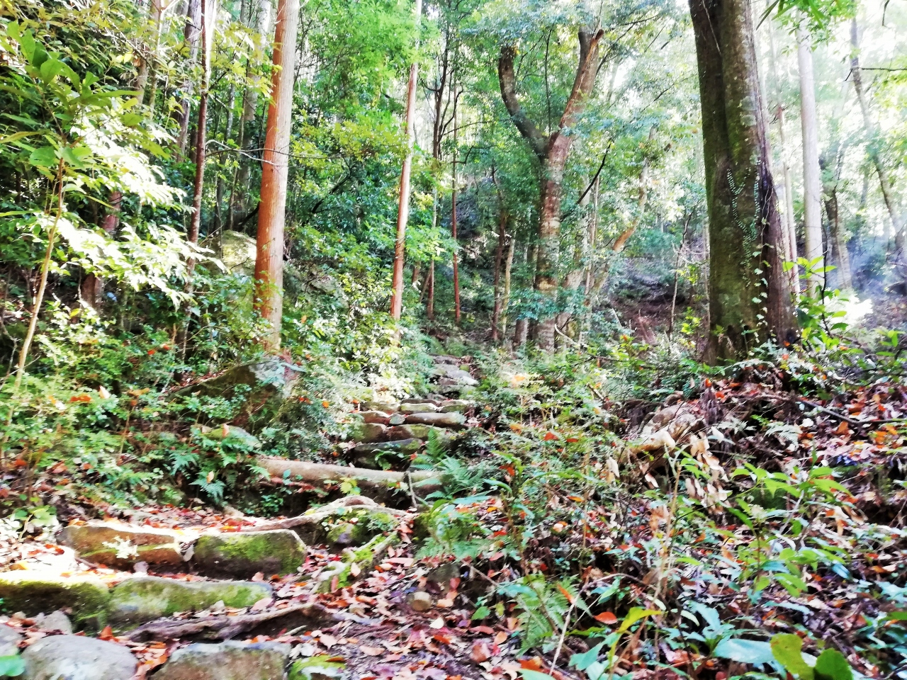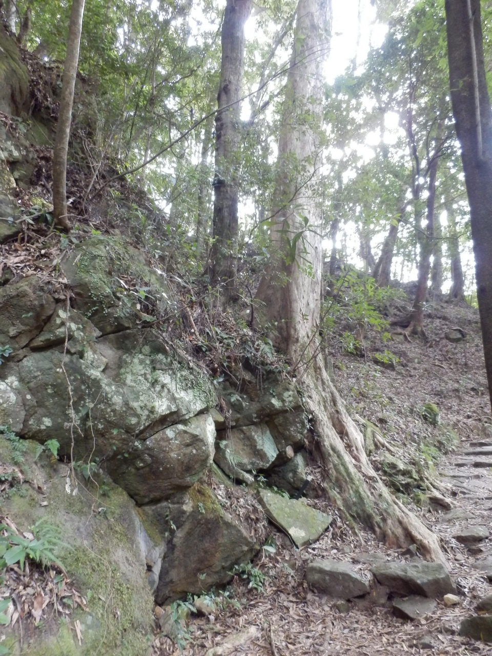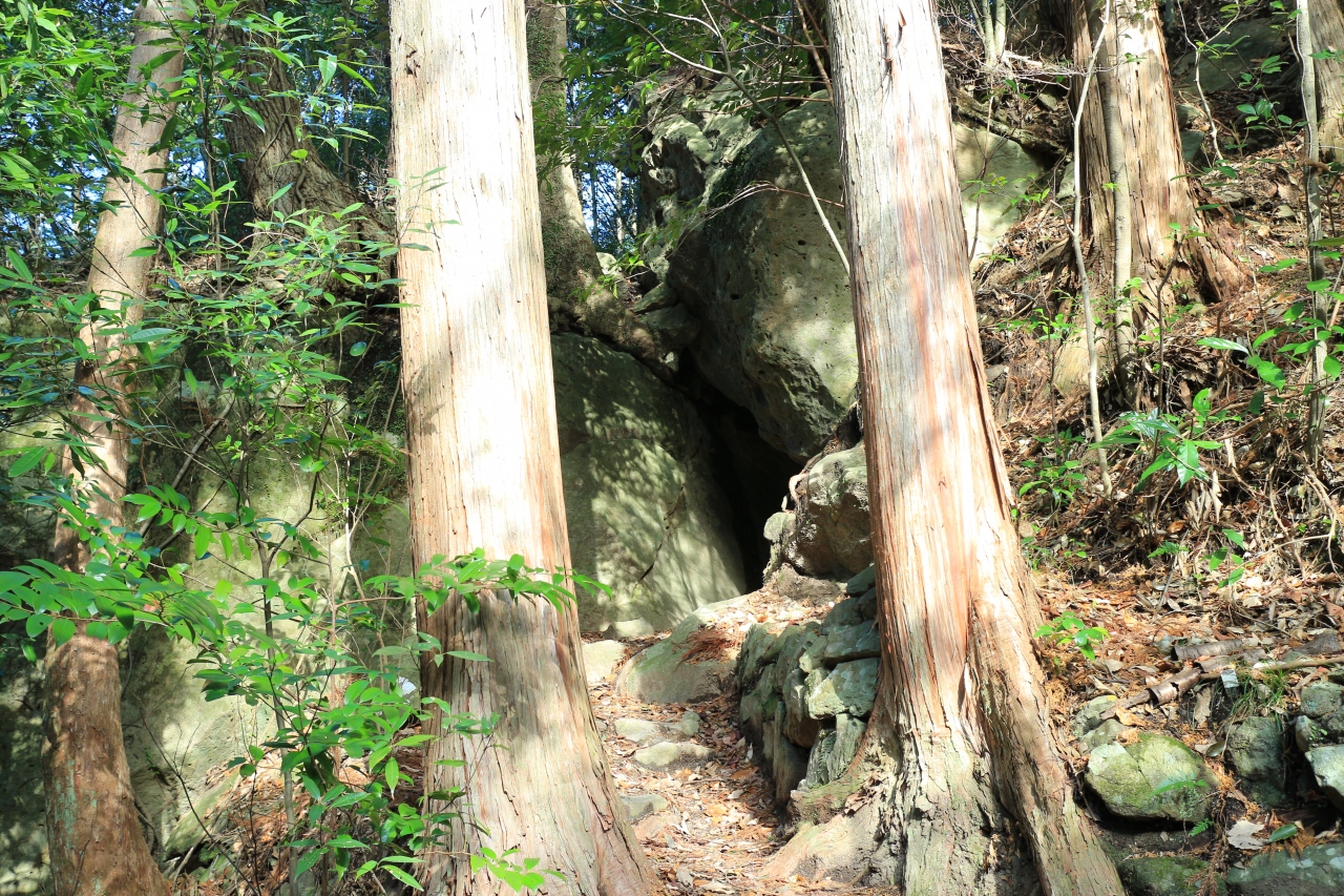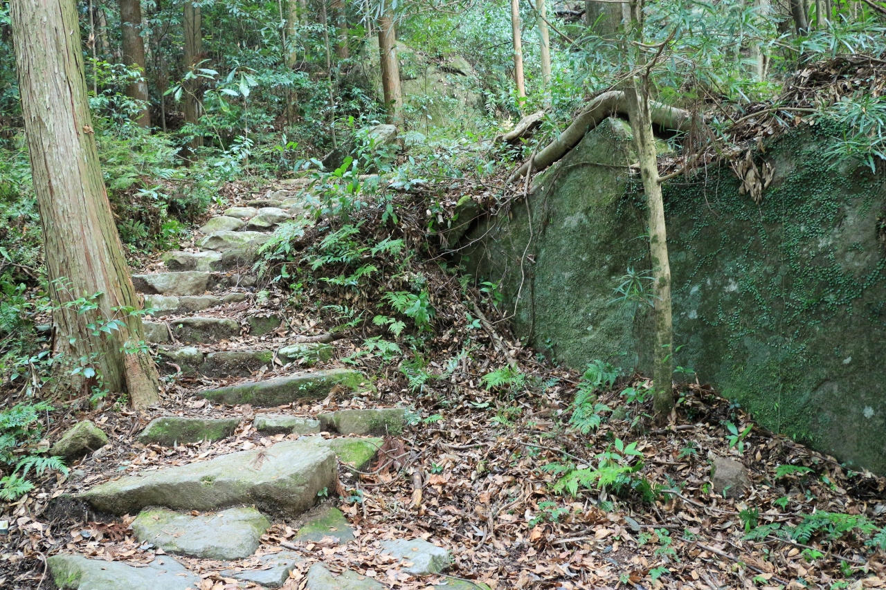 熊野古道中辺路の本格的参詣道の出発点 急登のあとには伝説の巨岩