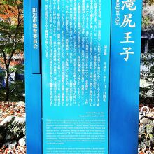 熊野九十九王子の中で地位の高い王子社で五体王子に列せられている。ここから熊野権現の霊域に入る。往時は経供養や里神楽が奉納されたり、歌会が開かれたりもしていた。鎌倉期の町名塔婆や室町期の宝篋印塔が境内に残っている。裏山に伝説の乳岩などがある。