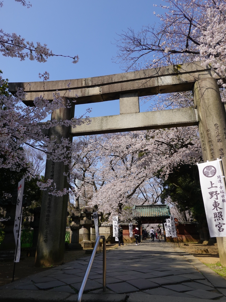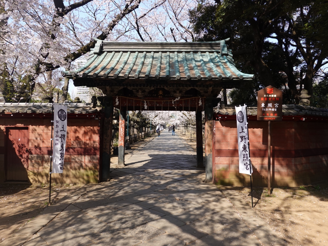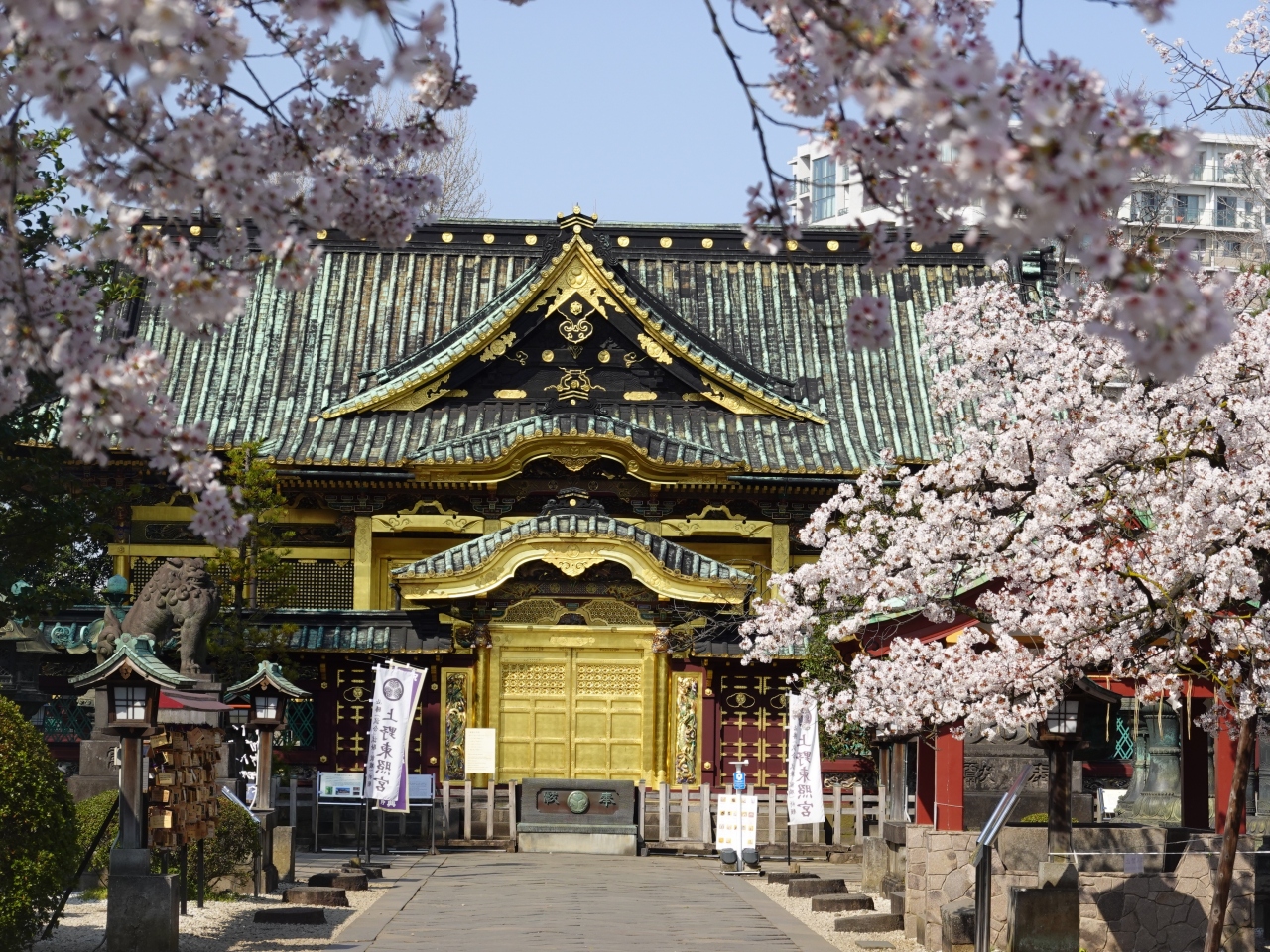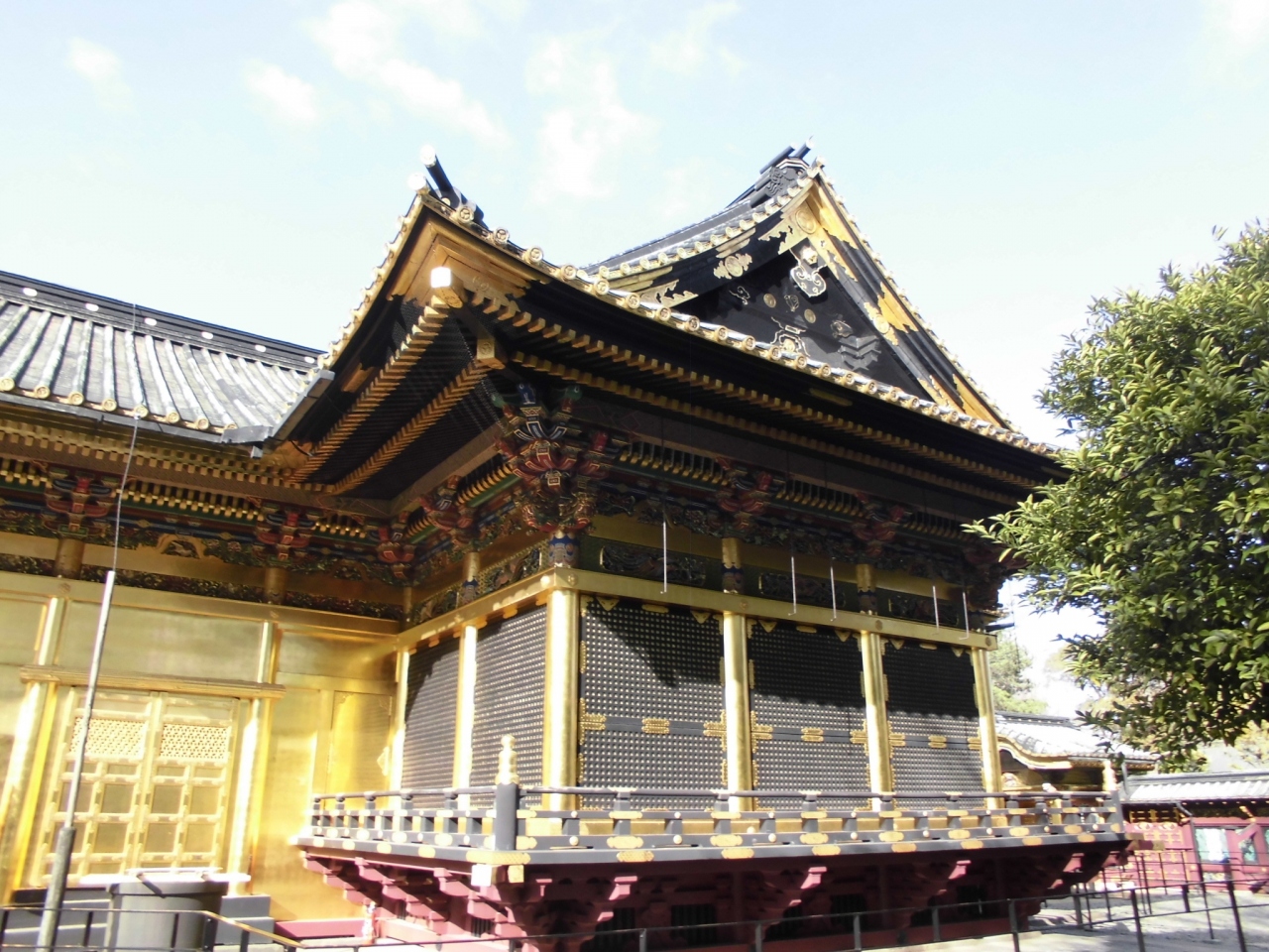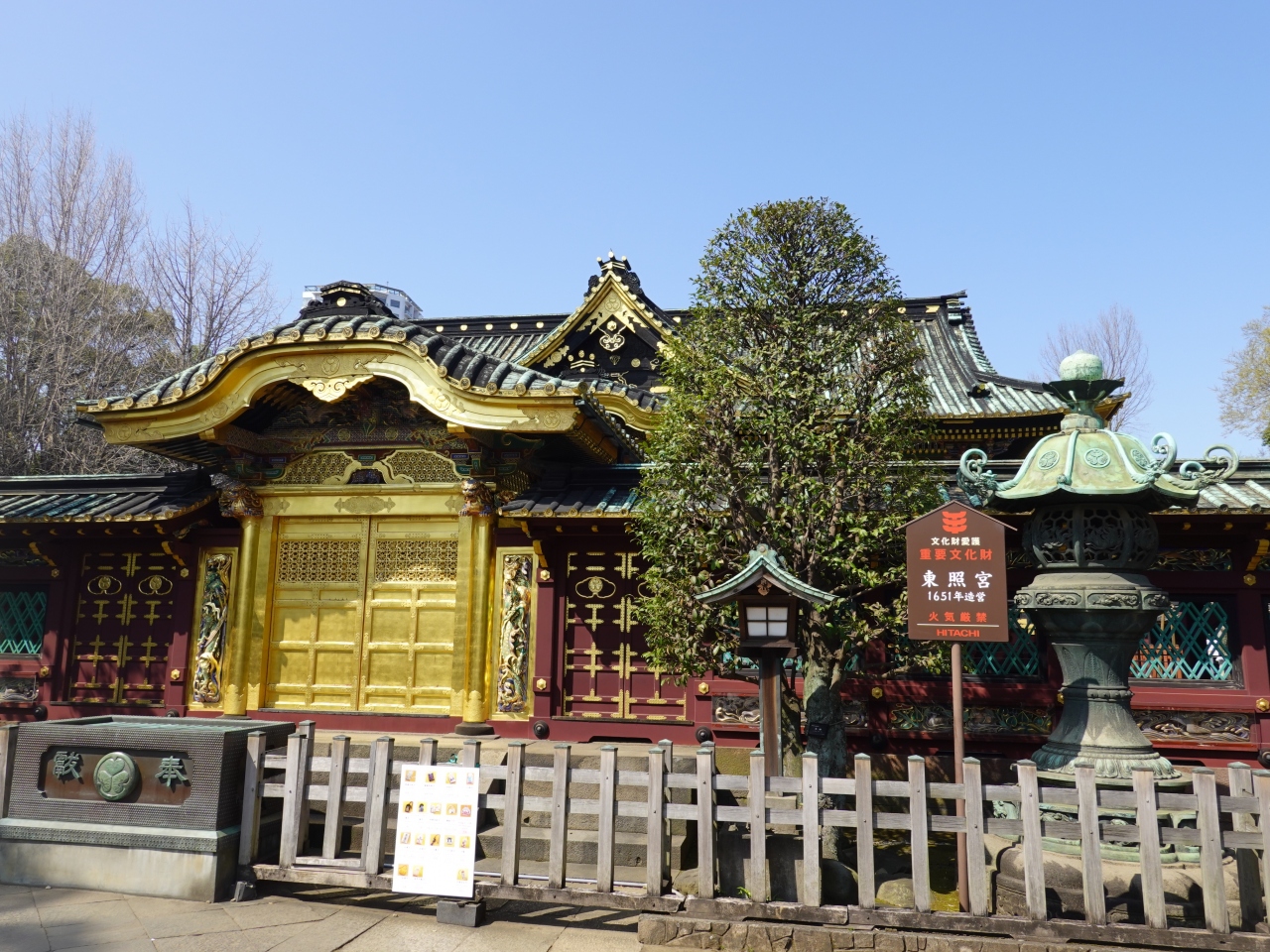 寛永4年(1627)創建の東京都台東区上野公園に鎮座する神社。徳川家康公<東照大権現>を神様としてお祀りする神社で東京では数少ない本格的な江戸建築を残している。金色殿(社殿)、唐門(左甚五郎作(昇り竜降り竜)透塀、諸大名から奉納された銅灯篭(徳川御三家献納の青銅灯篭もある)大石鳥居など重要文化財となっている。平成25年12月、社殿の修復工事が完了。また、ぼたん苑があり、冬ぼたん(1月1日~2月末頃)春の上野ぼたん祭(4月中旬~5月上旬)を行っている。
