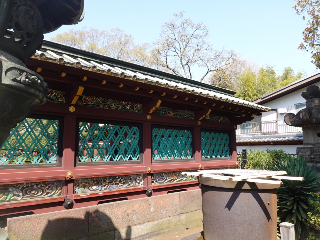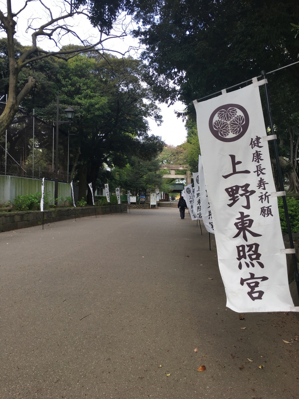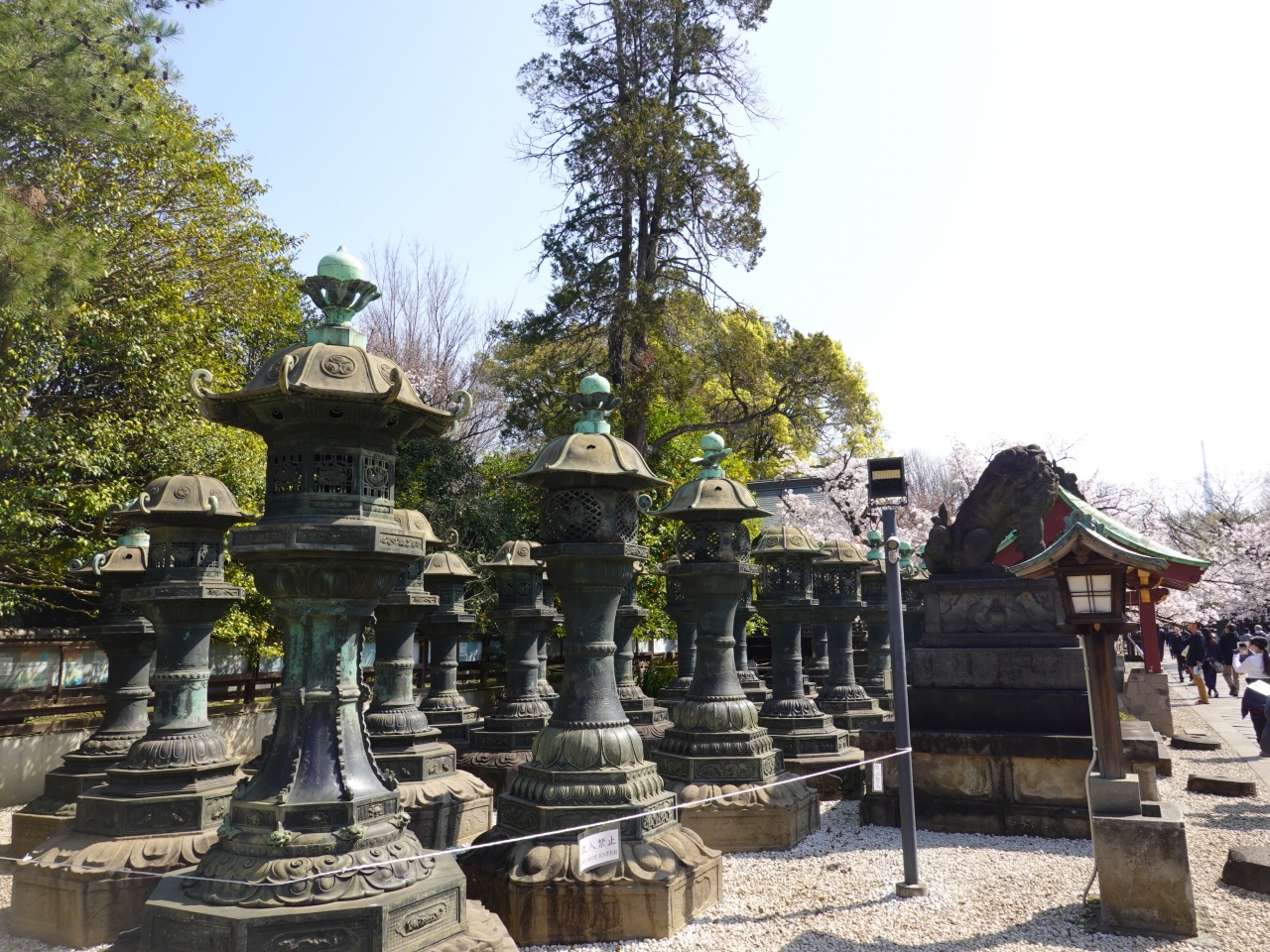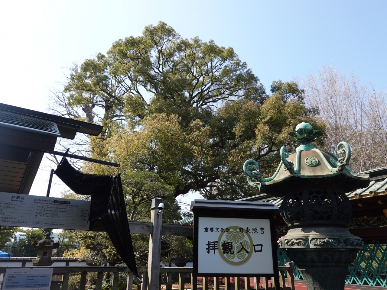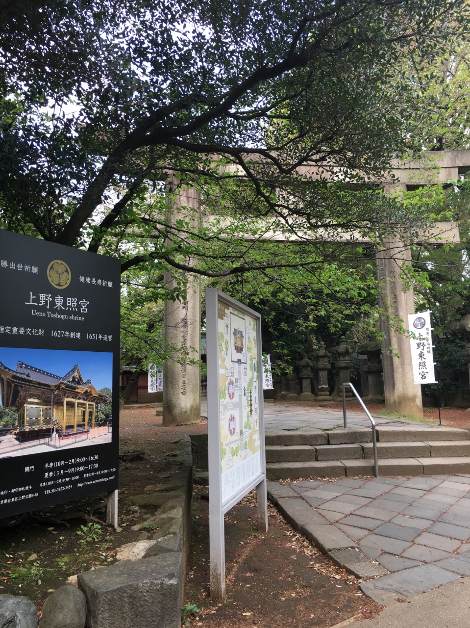 寛永4年(1627)創建の東京都台東区上野公園に鎮座する神社。徳川家康公<東照大権現>を神様としてお祀りする神社で東京では数少ない本格的な江戸建築を残している。金色殿(社殿)、唐門(左甚五郎作(昇り竜降り竜)透塀、諸大名から奉納された銅灯篭(徳川御三家献納の青銅灯篭もある)大石鳥居など重要文化財となっている。平成25年12月、社殿の修復工事が完了。また、ぼたん苑があり、冬ぼたん(1月1日~2月末頃)春の上野ぼたん祭(4月中旬~5月上旬)を行っている。