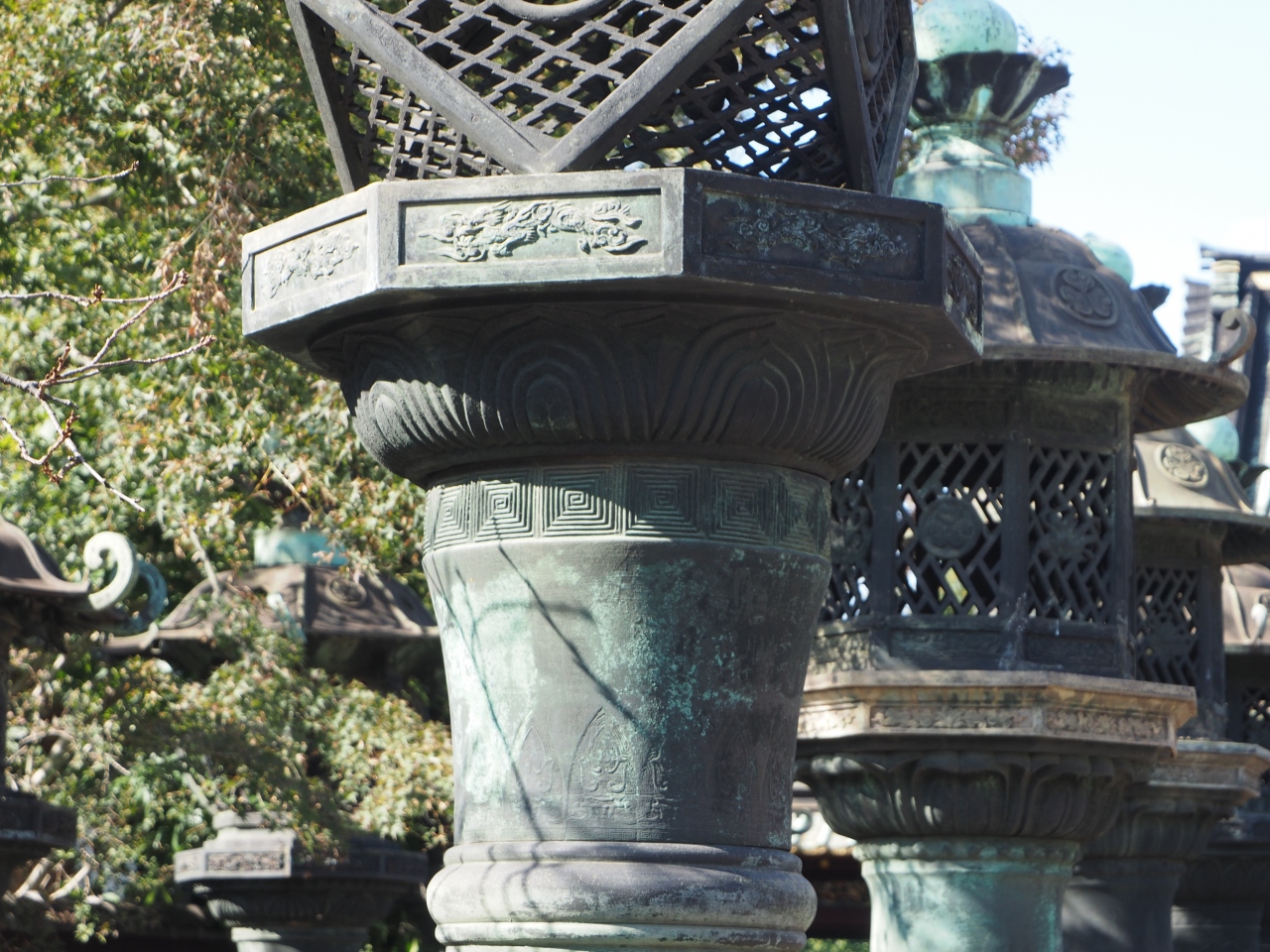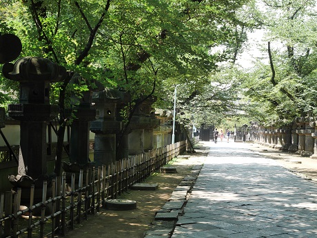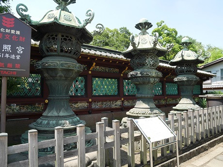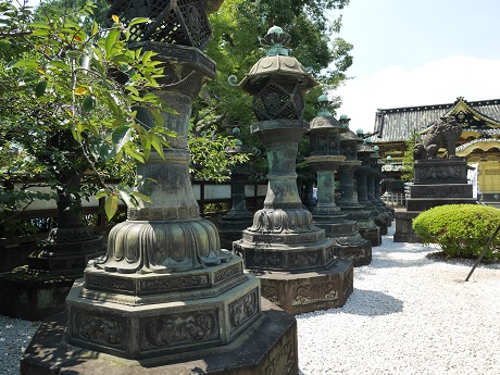 50基ある銅灯籠には奉納者の名前が刻まれているので徳川御三家や藤堂高虎などの灯籠を探してみては