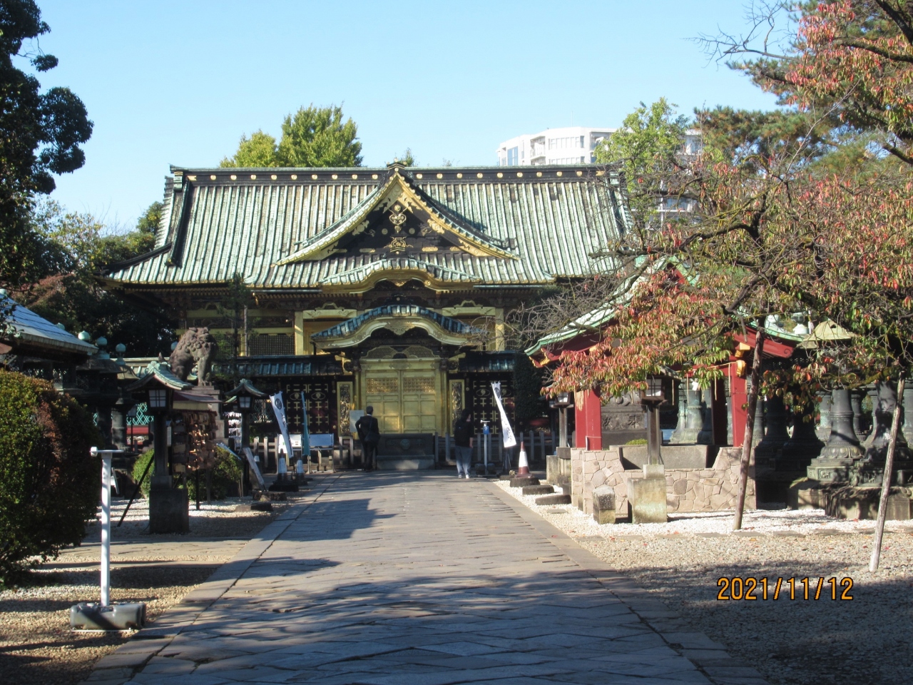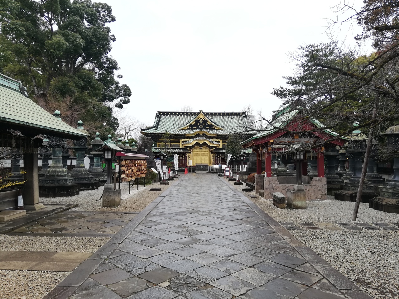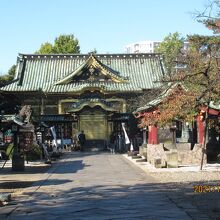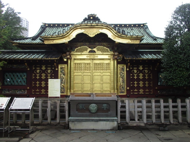 The shrine is located in Ueno Onshi Park. Ueno Onshi Park is crowded with people mainly on holidays, but except for the year-end and New Year holidays and the Peony Festival held at Botan-en, the area around the shrine is relatively quiet and there are not many people coming and going. The golden hall of worship is a distinctive feature of the shrine, but strangely enough, it doesn't give off an ostentatious impression; it just sits there.