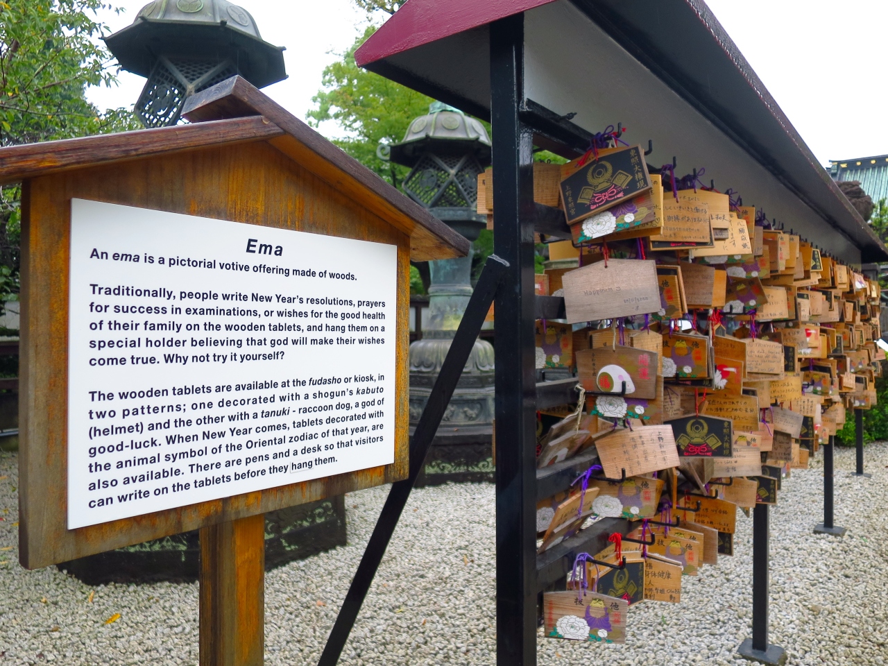 Small shrine in Ueno Onshi Park, English explanatory text is extensive