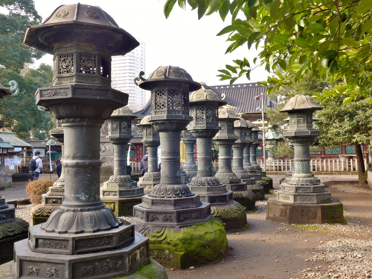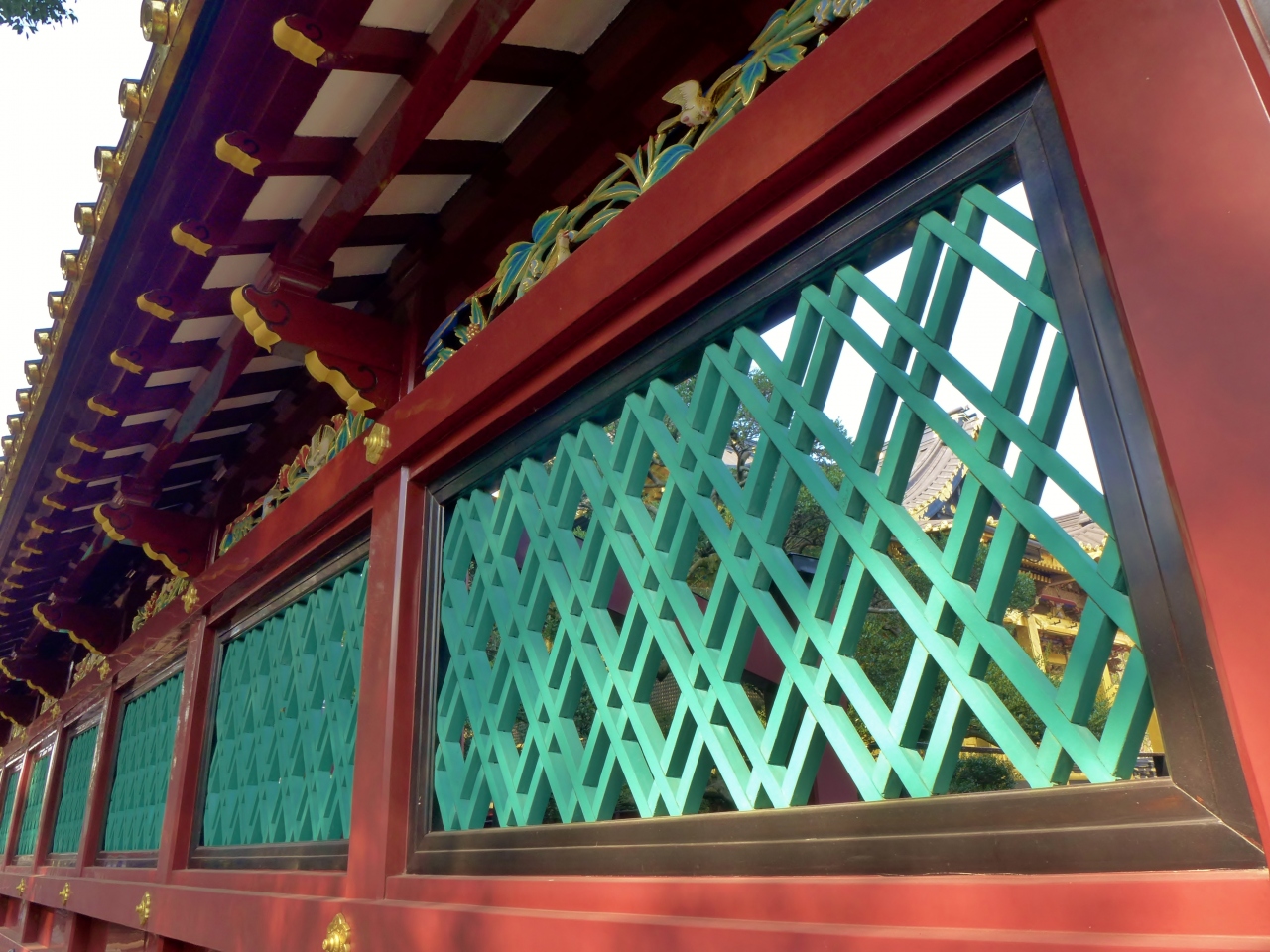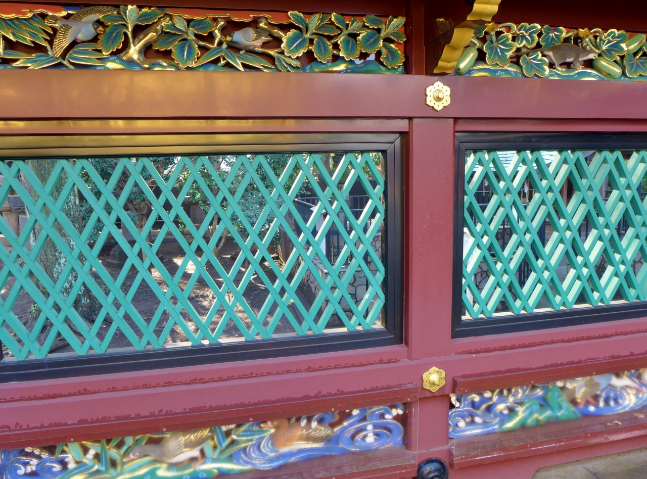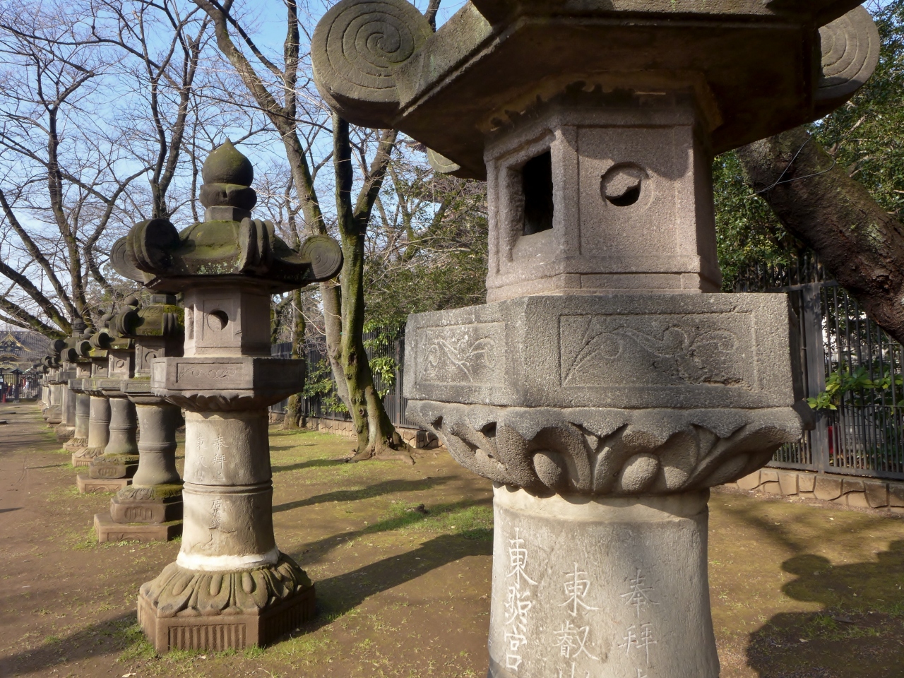 寛永4年(1627)創建の東京都台東区上野公園に鎮座する神社。徳川家康公<東照大権現>を神様としてお祀りする神社で東京では数少ない本格的な江戸建築を残している。金色殿(社殿)、唐門(左甚五郎作(昇り竜降り竜)透塀、諸大名から奉納された銅灯篭(徳川御三家献納の青銅灯篭もある)大石鳥居など重要文化財となっている。平成25年12月、社殿の修復工事が完了。また、ぼたん苑があり、冬ぼたん(1月1日~2月末頃)春の上野ぼたん祭(4月中旬~5月上旬)を行っている。