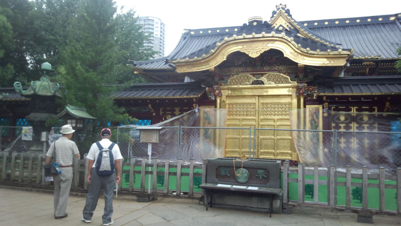 寛永4年(1627)創建の東京都台東区上野公園に鎮座する神社。徳川家康公<東照大権現>を神様としてお祀りする神社で東京では数少ない本格的な江戸建築を残している。金色殿(社殿)、唐門(左甚五郎作(昇り竜降り竜)透塀、諸大名から奉納された銅灯篭(徳川御三家献納の青銅灯篭もある)大石鳥居など重要文化財となっている。平成25年12月、社殿の修復工事が完了。また、ぼたん苑があり、冬ぼたん(1月1日~2月末頃)春の上野ぼたん祭(4月中旬~5月上旬)を行っている。
