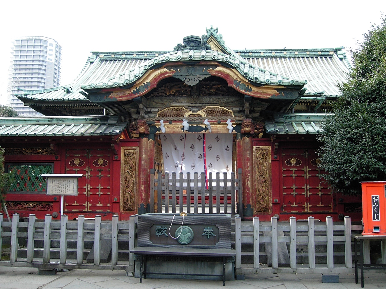 寛永4年(1627)創建の東京都台東区上野公園に鎮座する神社。徳川家康公<東照大権現>を神様としてお祀りする神社で東京では数少ない本格的な江戸建築を残している。金色殿(社殿)、唐門(左甚五郎作(昇り竜降り竜)透塀、諸大名から奉納された銅灯篭(徳川御三家献納の青銅灯篭もある)大石鳥居など重要文化財となっている。平成25年12月、社殿の修復工事が完了。また、ぼたん苑があり、冬ぼたん(1月1日~2月末頃)春の上野ぼたん祭(4月中旬~5月上旬)を行っている。