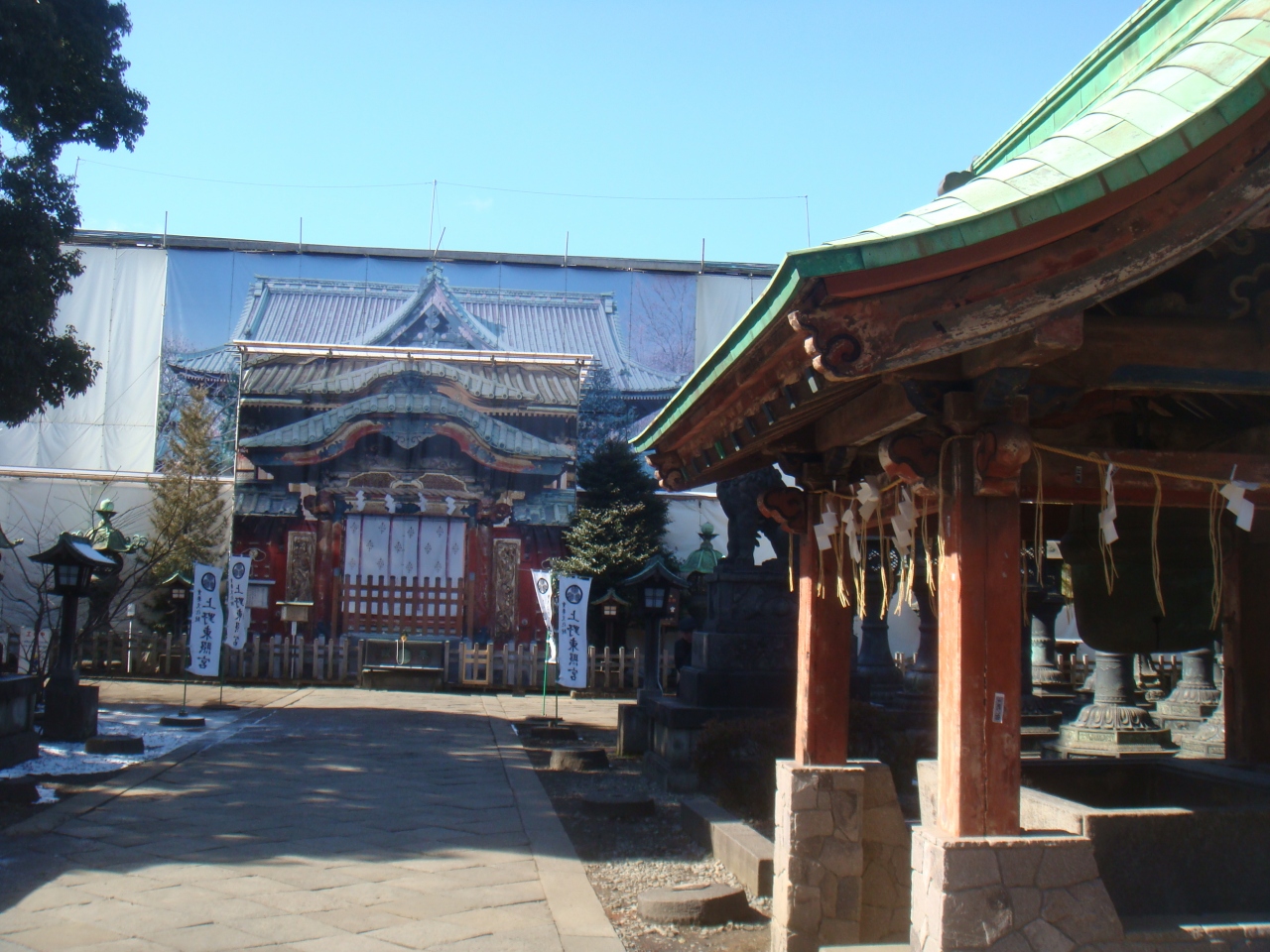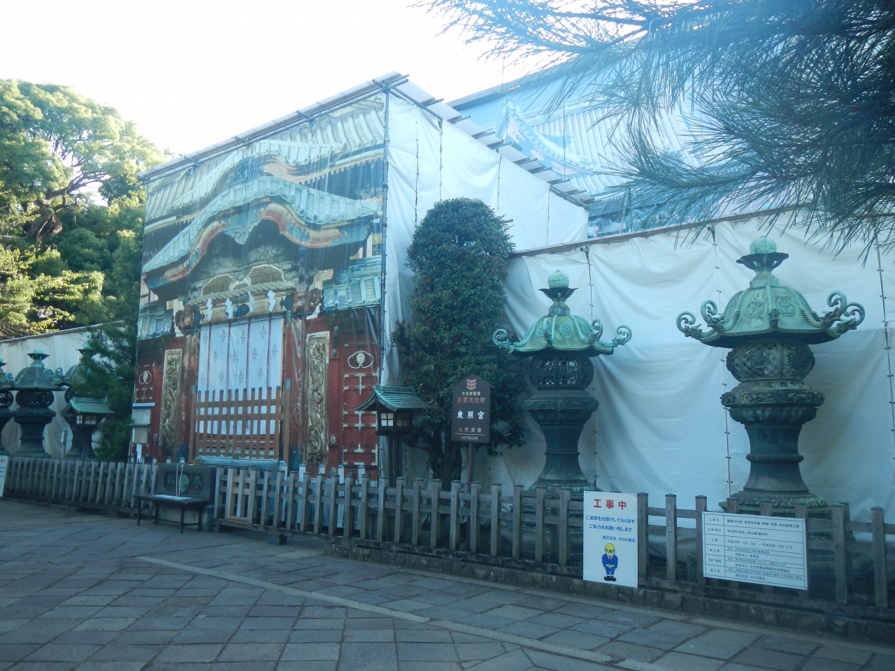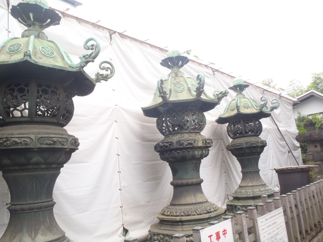 上野の東照宮の社殿は現在工事中でしたが、一番古いという銅燈籠を見てきました。