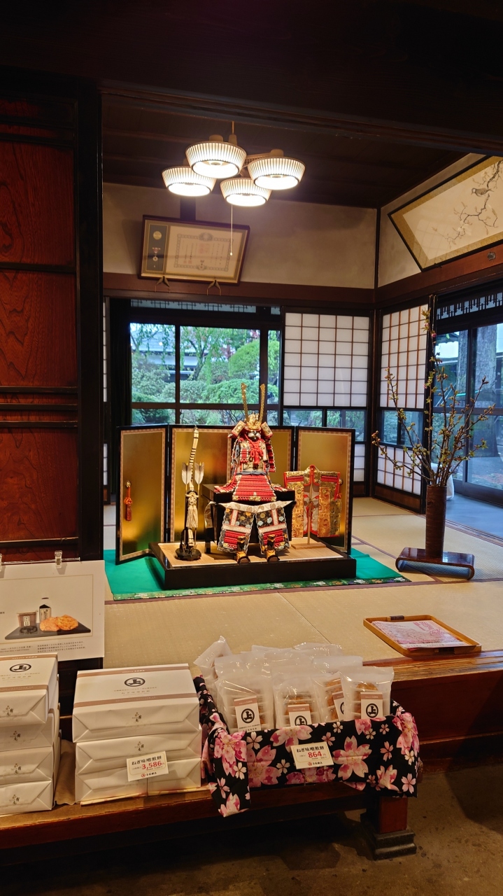 武家屋敷とは反対方向の外町エリアにあるお味噌、醤油の醸造店。170年余りの老舗だそうです。レンガ造りの粋な建物の中は沢山の... 続きを読む商品が並んでいて楽しい。古いたつものの一角には和室が残っていて五月人形などが飾ってあり観光客を楽しませています。座敷の天井付近には代々の先祖の遺影が飾られている。 昔の家にはよくこの様に写真が飾られていた。大人になってその写真はお葬式に使われたものなんだと分かった時から、ちょっと恐い気がしましたので、この部屋に並んでいる写真もちょっと恐い。でも、ご先祖の方はお店の繁盛を喜ばれていると思います。沢山の商品から、出しや味噌、お菓子も買いましたが、一番気に入ったのは麹でした。キュウリを漬けただけでこんなに美味しいなんて。帰宅してすぐに真似して作りました。作り方と見本の味見ができる事が嬉しいです。麹だけ積んであっても買わなかったかな。 閉じる