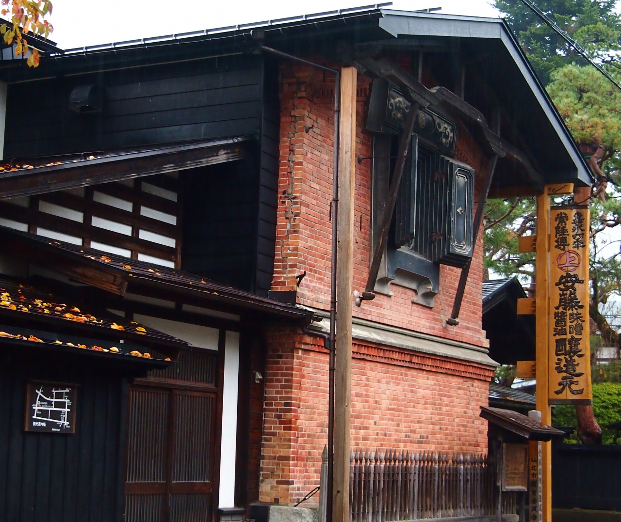 表はレンガ作りの古い商家