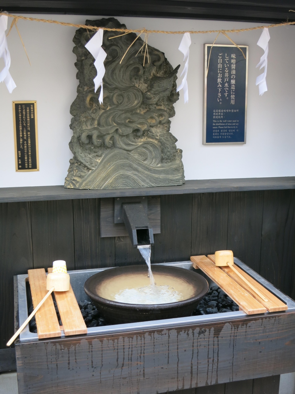 古き本店ですから、土蔵が沢山あるようです。土蔵の一部屋が、味見コーナーになっていました。出汁や味噌汁が、いくつも味見が出来ました。このあたりは、観光客が武家屋敷店よりも少ない静けさでしょうか。貸し切り状態のようにのんびり、漬物まで味見をしてしまいました。熟成味噌の味噌汁が、出汁を入れてないと言う説明にびっくり。美味しかったのです。