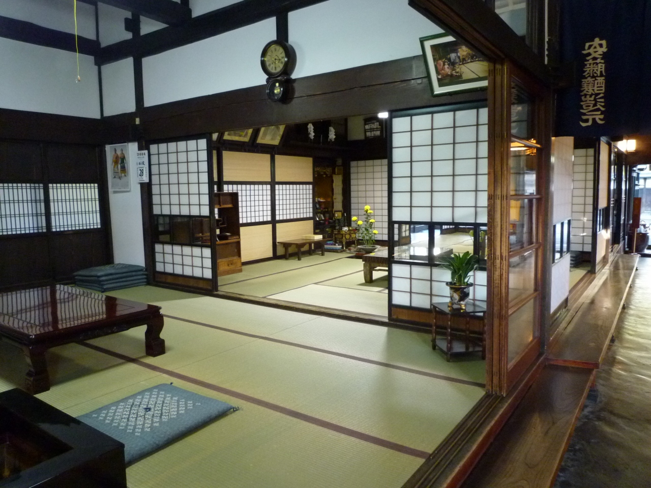 お店の方に聞くと、土蔵があるから昔の建具も保存できているとか。見れば和室の襖が、全て風を通す夏用の物に変えてありました。作られた当時の空間や建具などを維持するのは簡単な事ではないのでしょうが、季節にあわせた建具に涼しさを感じました。