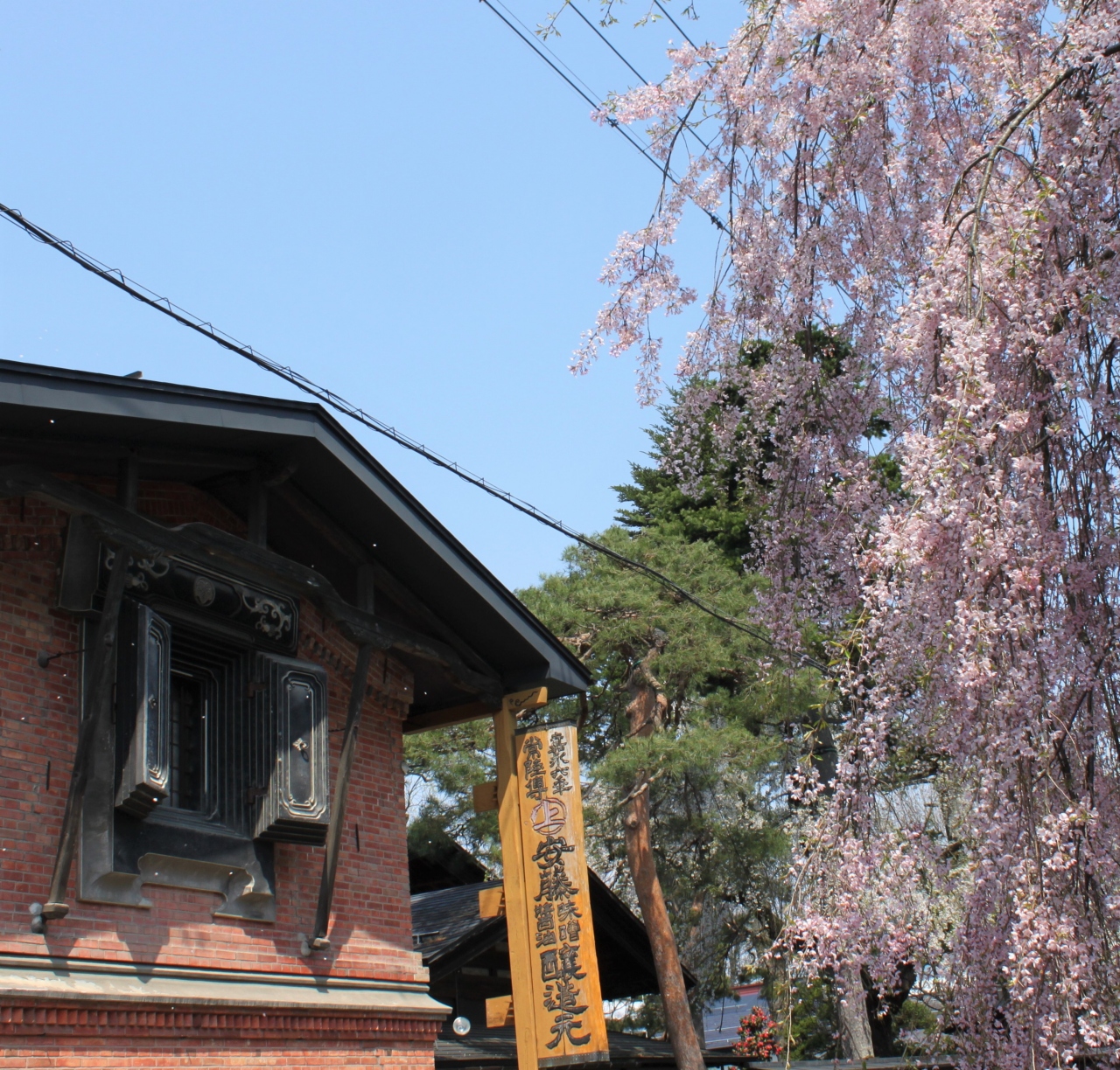 レンガ造蔵と桜