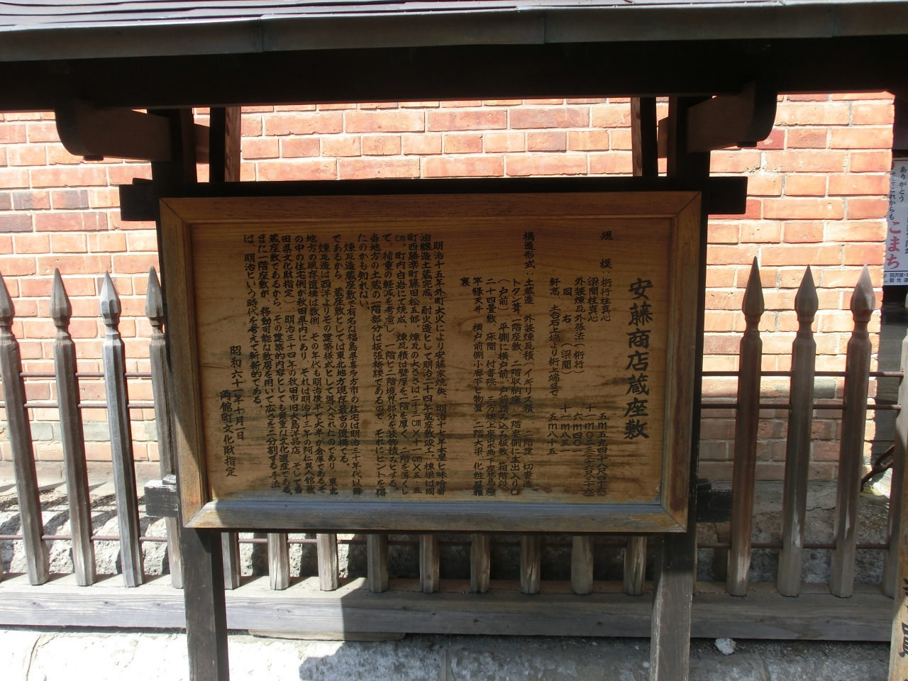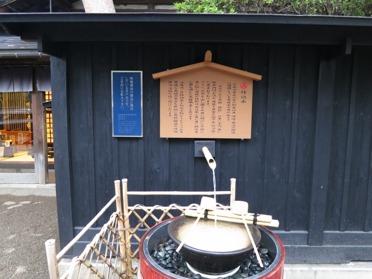 武家屋敷とは反対方向の外町エリアにあるお味噌、醤油の醸造店。170年余りの老舗だそうです。レンガ造りの粋な建物の中は沢山の... 続きを読む商品が並んでいて楽しい。古いたつものの一角には和室が残っていて五月人形などが飾ってあり観光客を楽しませています。座敷の天井付近には代々の先祖の遺影が飾られている。 昔の家にはよくこの様に写真が飾られていた。大人になってその写真はお葬式に使われたものなんだと分かった時から、ちょっと恐い気がしましたので、この部屋に並んでいる写真もちょっと恐い。でも、ご先祖の方はお店の繁盛を喜ばれていると思います。沢山の商品から、出しや味噌、お菓子も買いましたが、一番気に入ったのは麹でした。キュウリを漬けただけでこんなに美味しいなんて。帰宅してすぐに真似して作りました。作り方と見本の味見ができる事が嬉しいです。麹だけ積んであっても買わなかったかな。 閉じる
