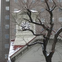 ビルの谷間にうもれていても、姿かたちは素敵な時計台