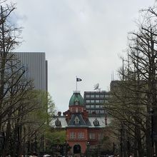 道庁入口より右側にある池です。自然とビルがマッチしてます