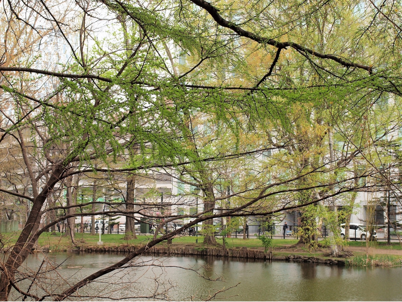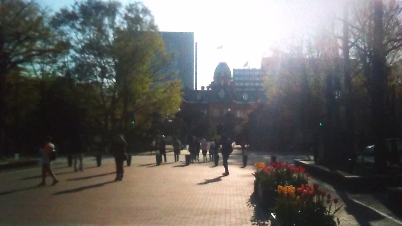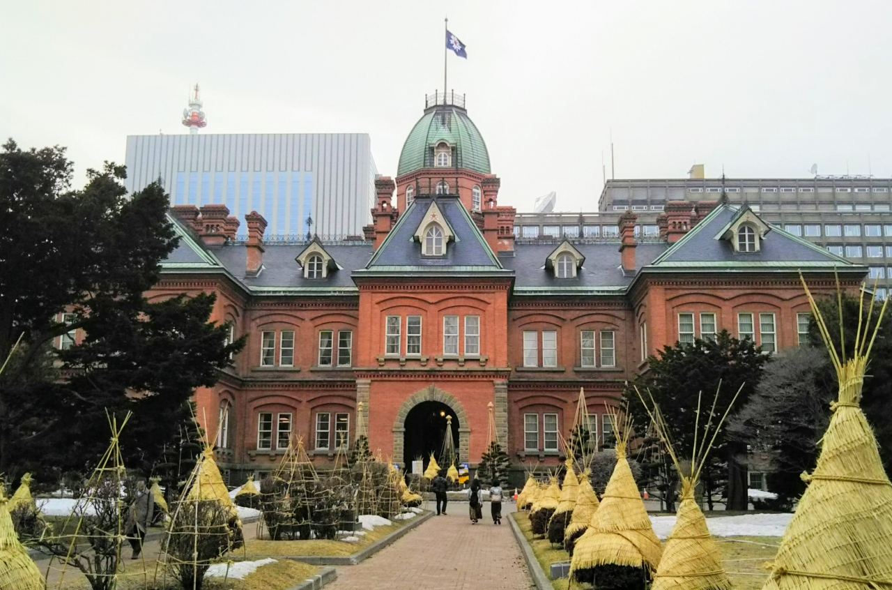 3月下旬、まだ冬囲いの残っている「赤れんが庁舎」
