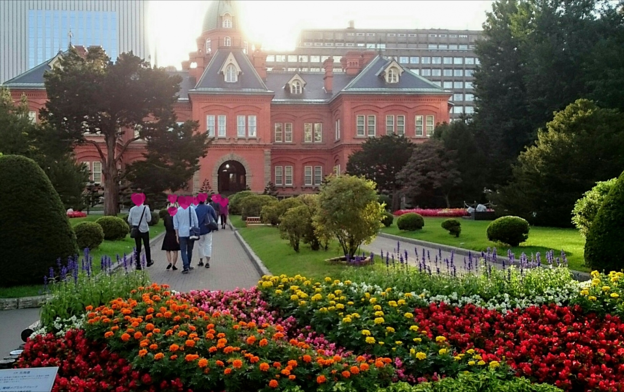 花壇越しの「赤れんが庁舎」(2015年9月上旬撮影)