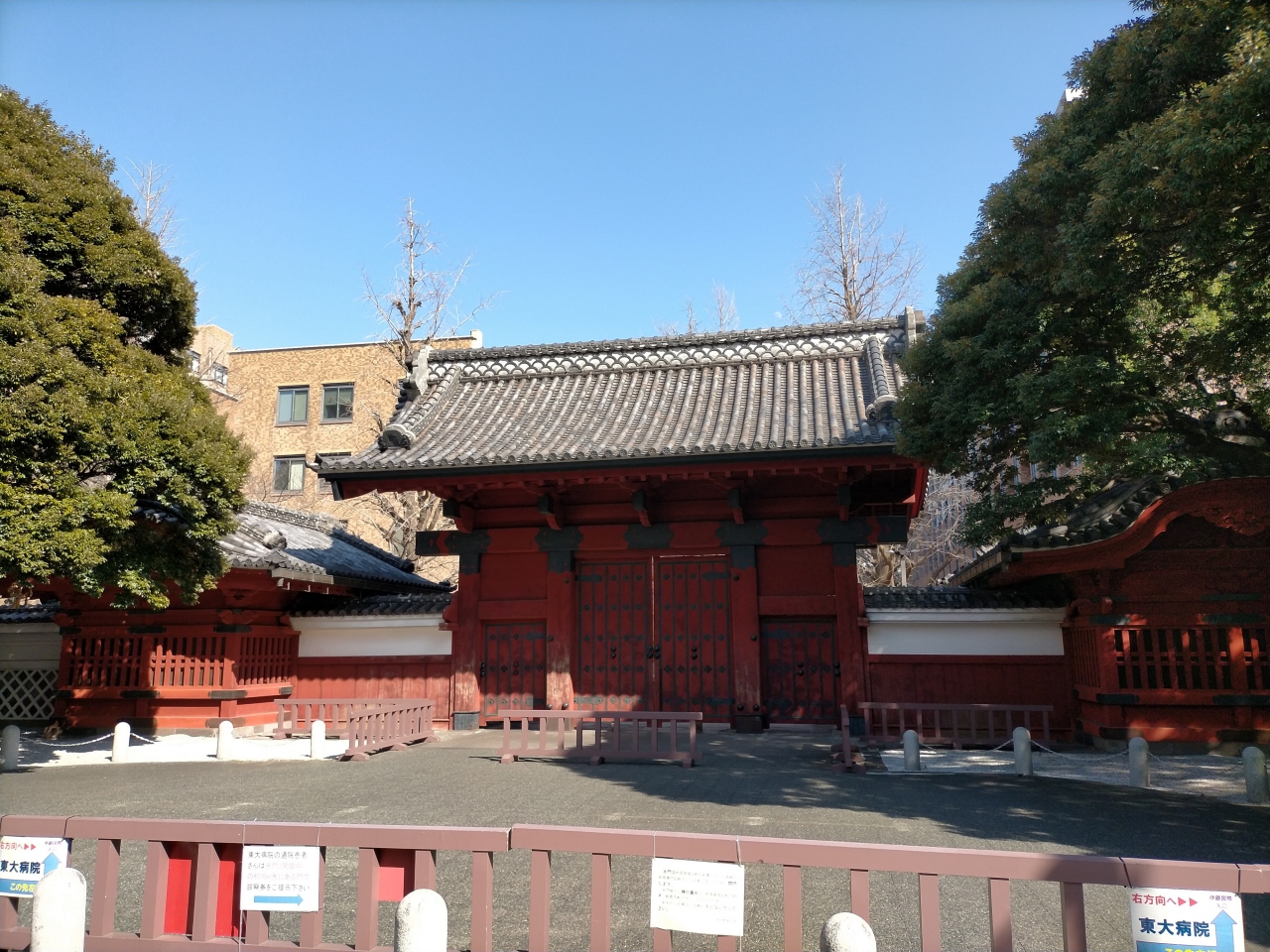 東大病院には自由に入れるのですが、赤門付近に抜けようとしたら、警備員に声を掛けられました。